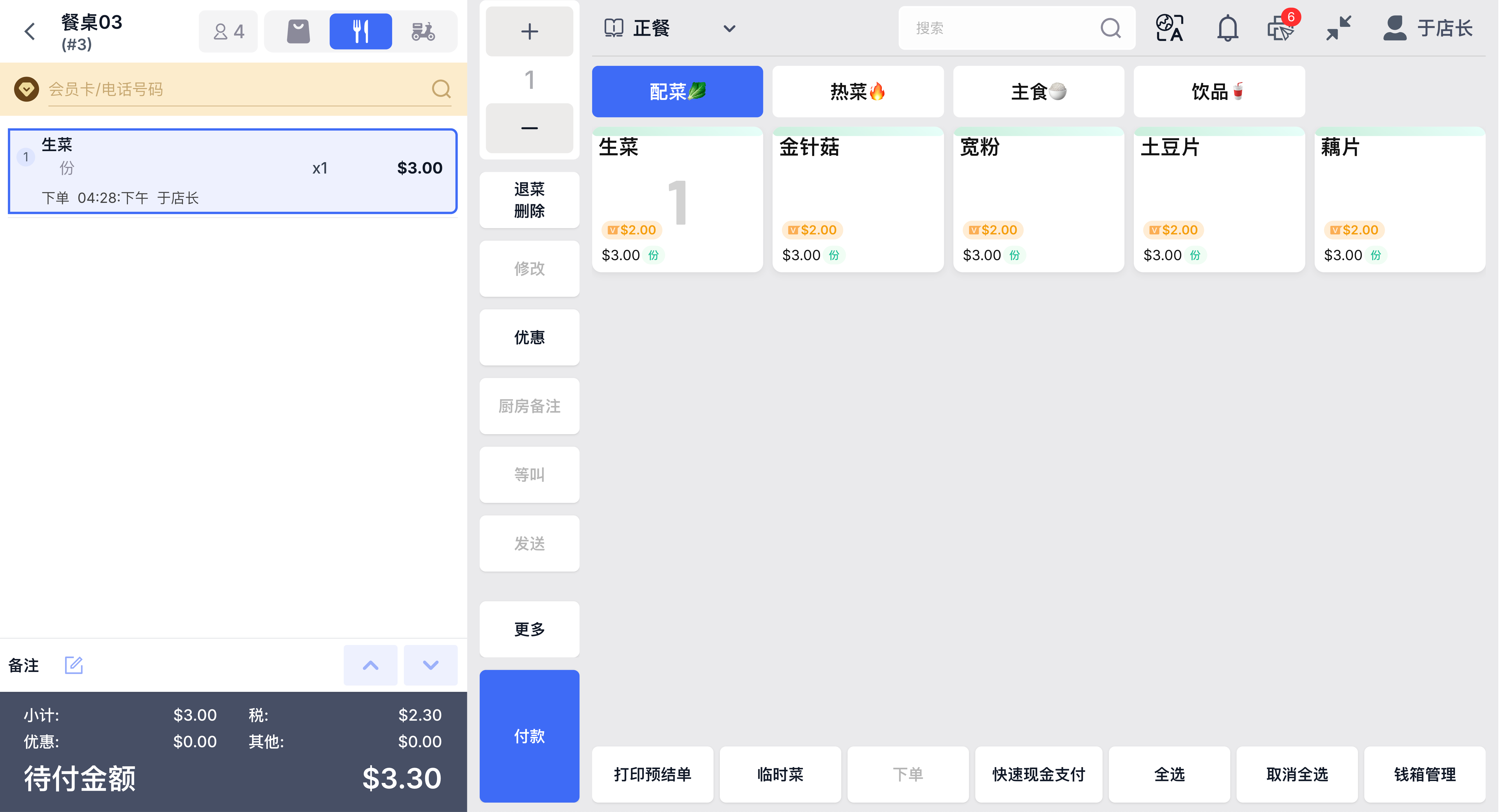 - 输入备用金:在弹窗中输入初始找赎金额(如 $200.00),支持数字键盘录入;