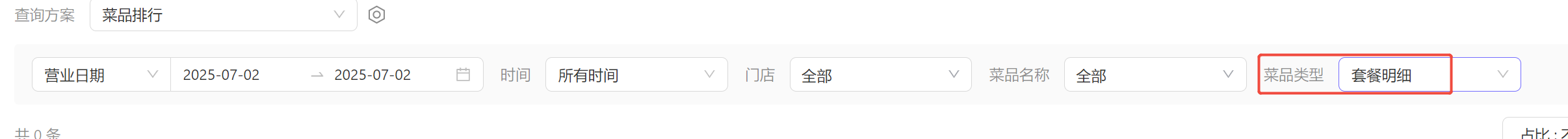 10 菜品A在套餐B和套餐C中均存在,如何在报表中查询菜品A在套餐B和套餐C中分别售卖了多少?
