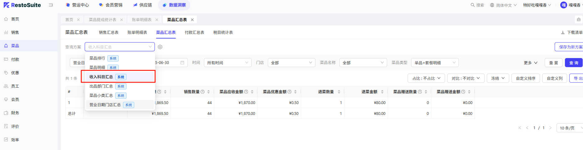 12 BO数据洞察中菜品销售汇总表是否支持查询开放菜品?
