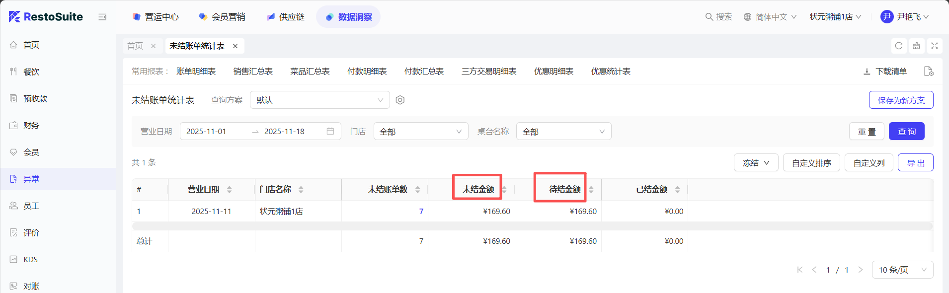待结金额:是未结账里面去掉已经付部分金额的剩余金额