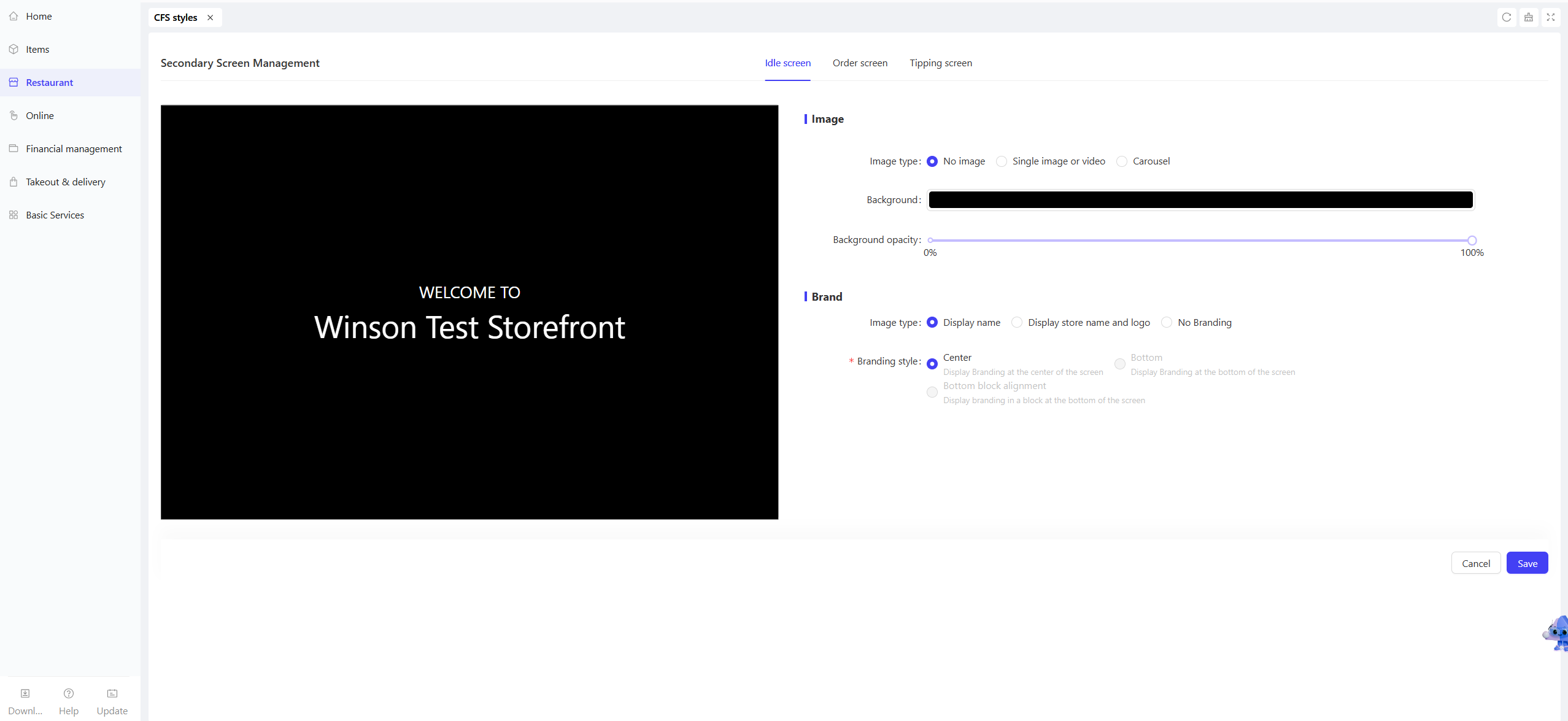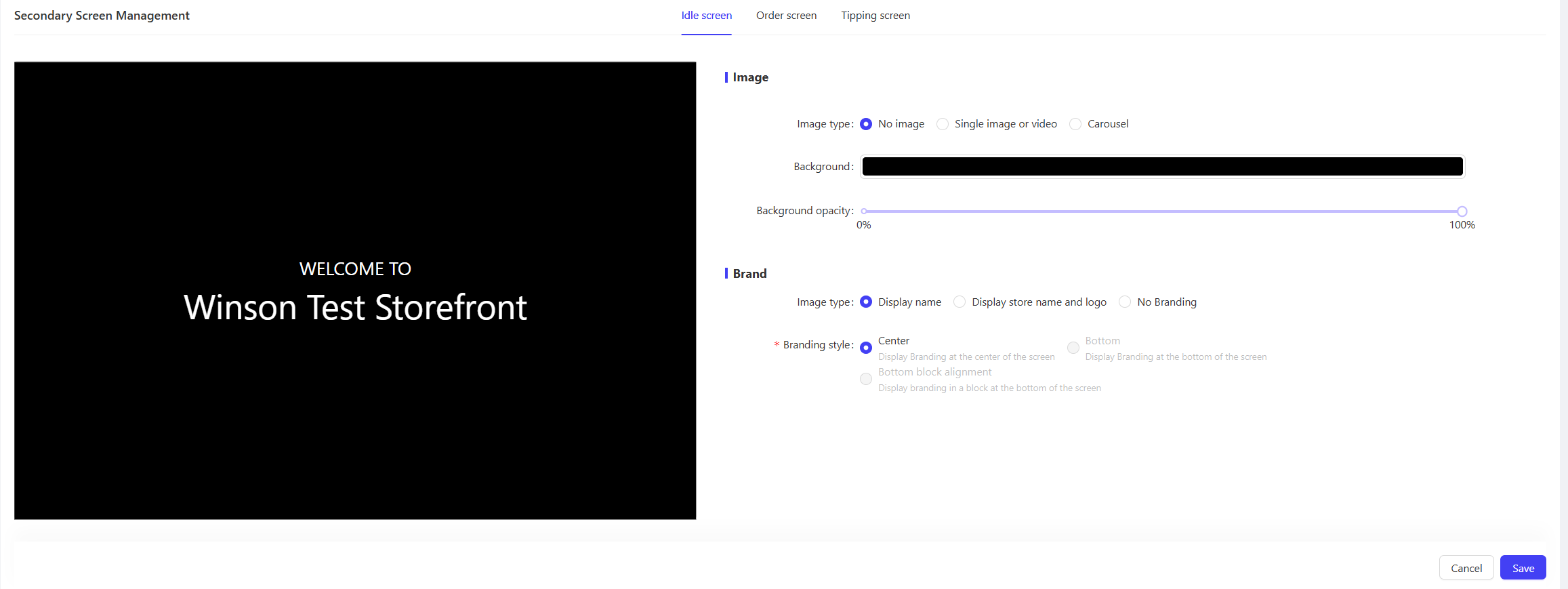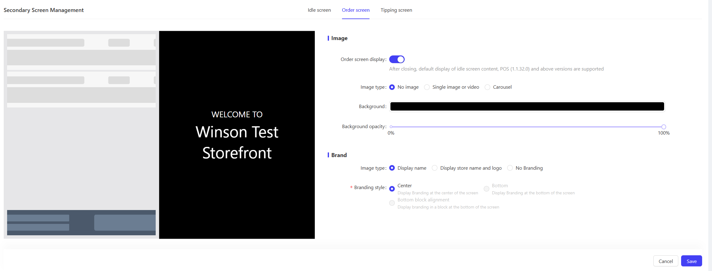 - Brand Information: Same as Idle Screen configuration, supports displaying Store Name and Logo.
