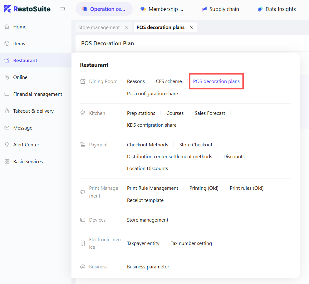 Decoration Scheme: A configuration template that controls the POS interface style. It is divided into【Group Preset Template】(used uniformly by the brand) and【Store Custom Scheme】(for personalized store adjustments).