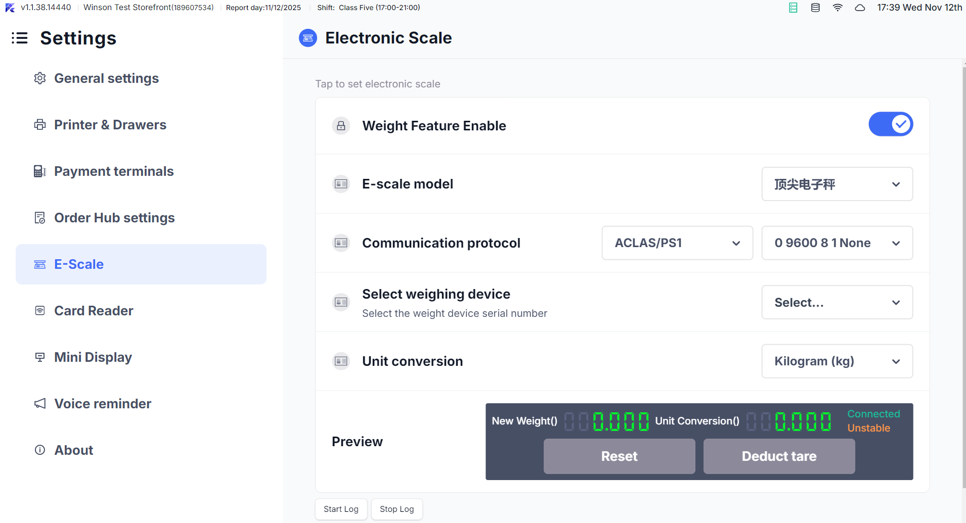 Access Settings: Log into the POS and navigate to【Settings】→【E-Scale】