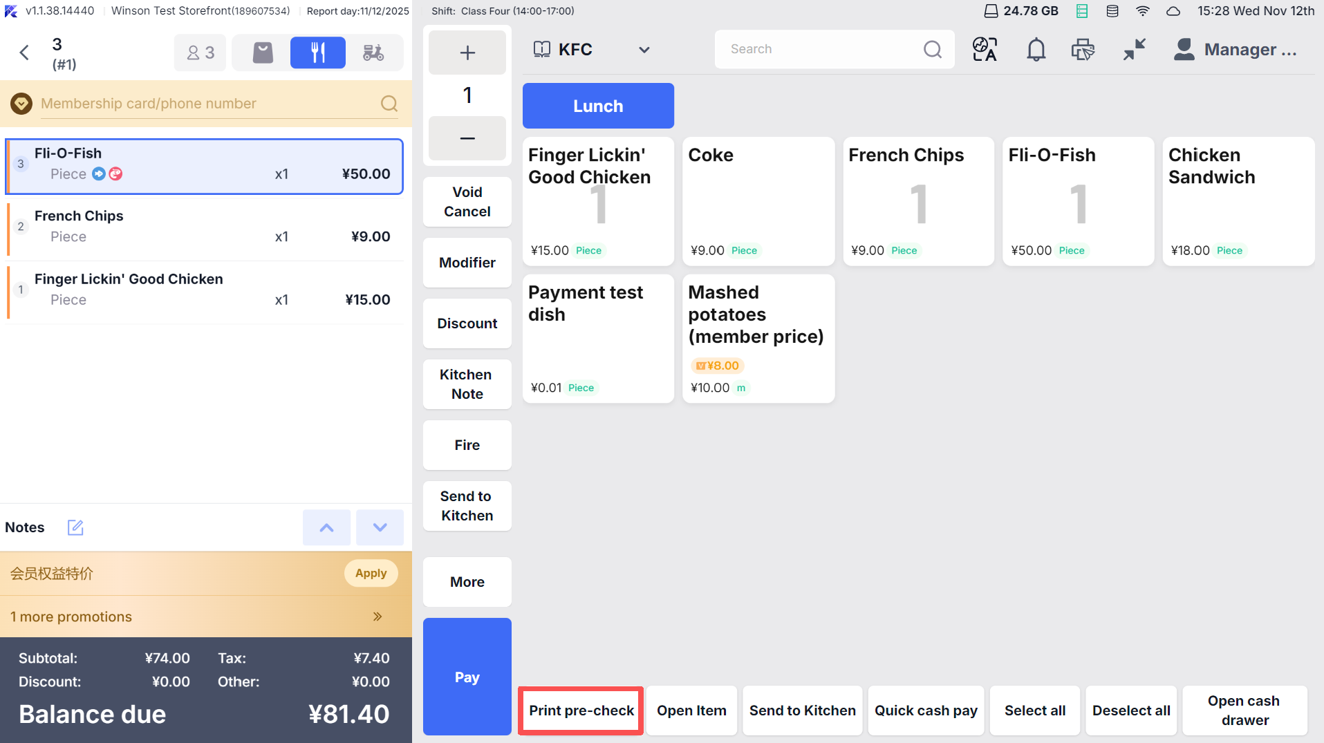 - Pre-bill: Click【Pre-Check】on the table page, manually select【Print Pre-Check】