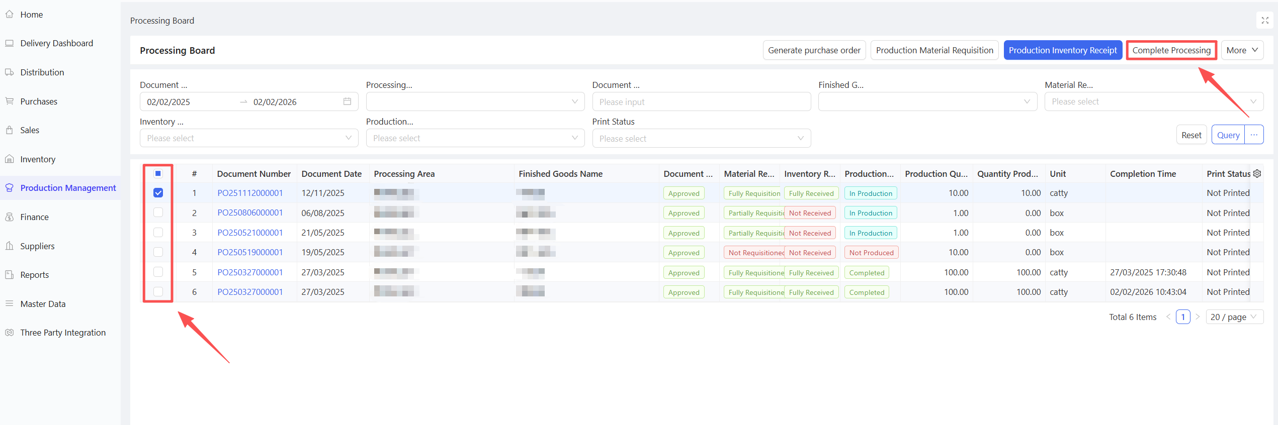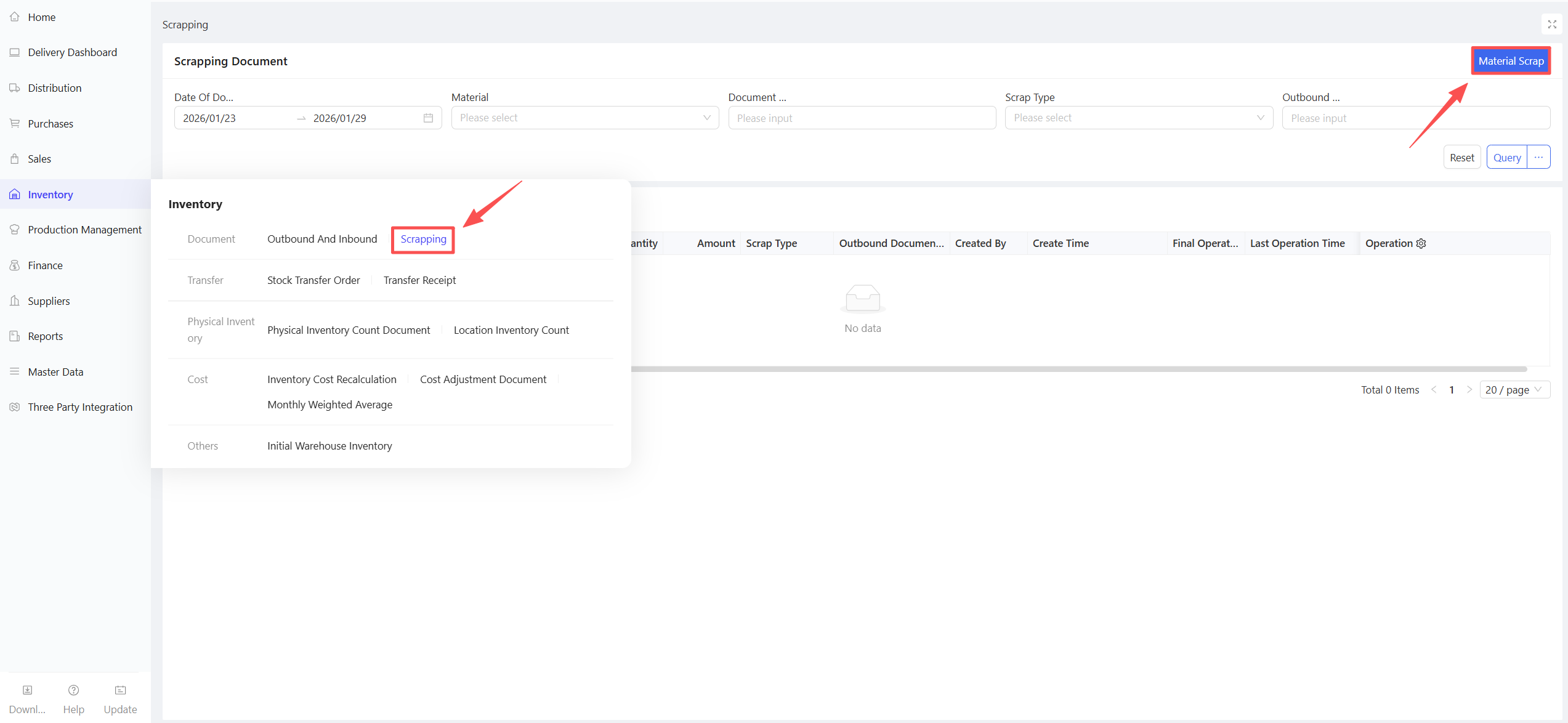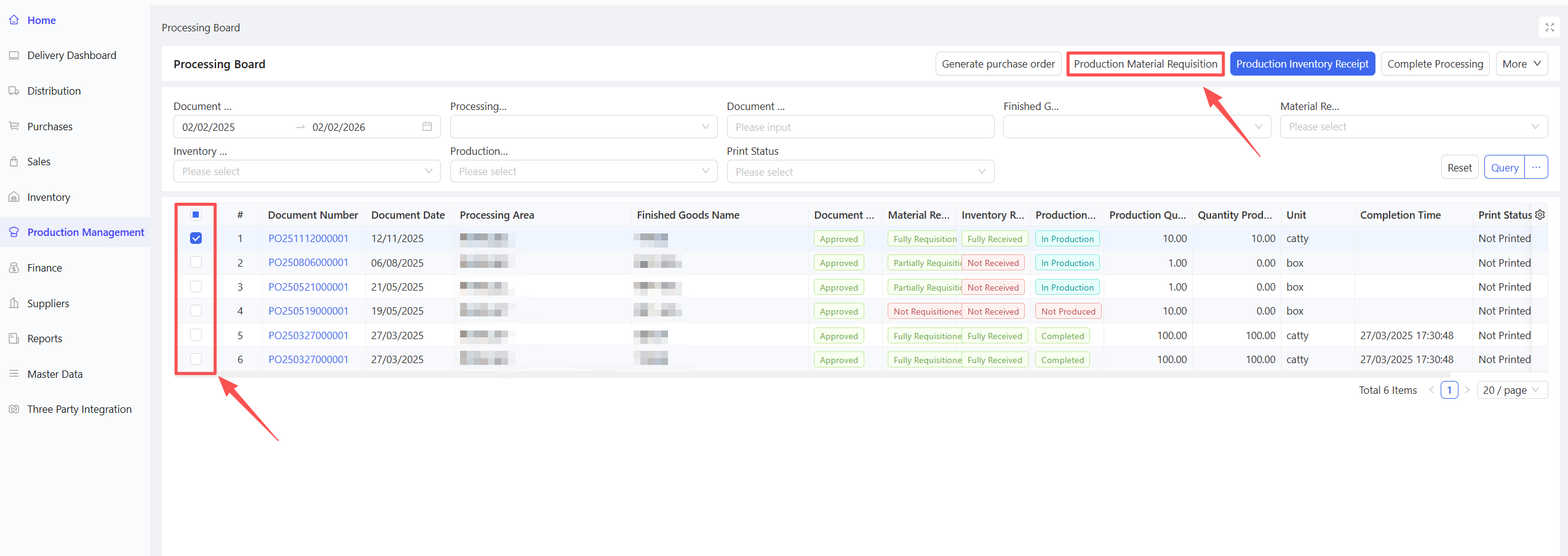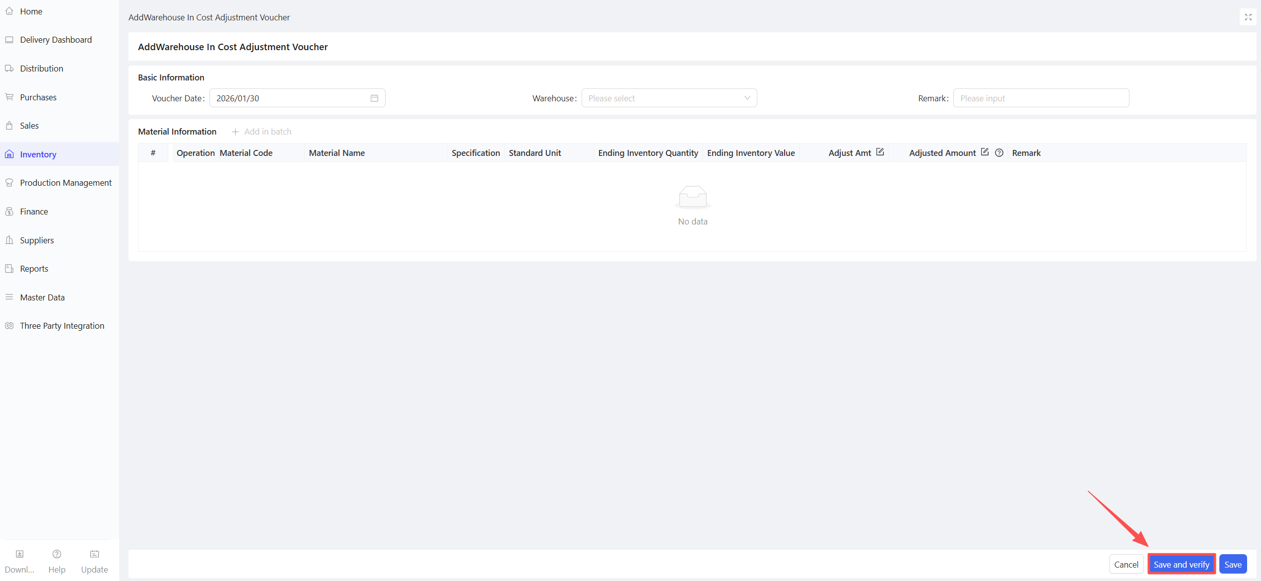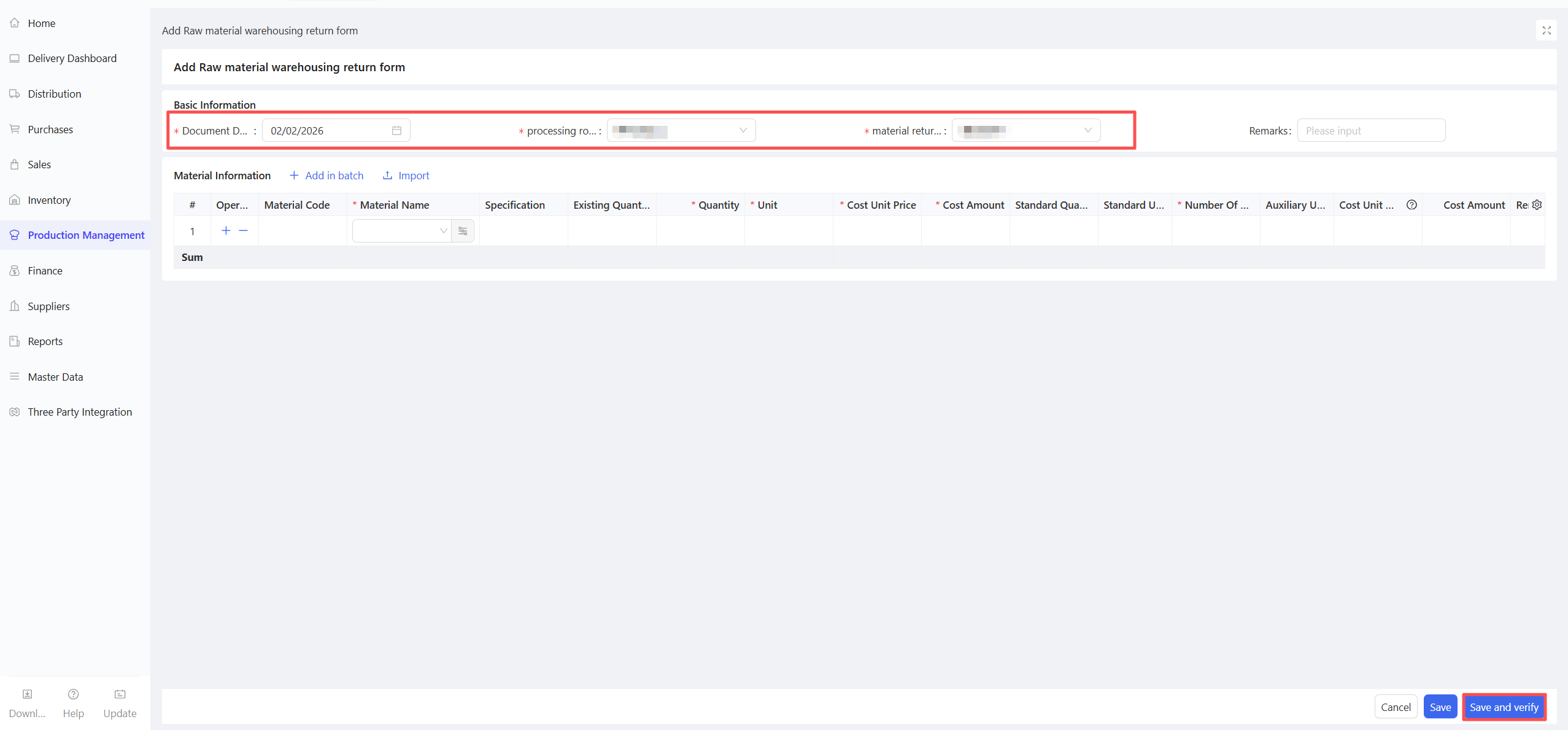 - Fill in the Material Procurement Quantity and Expected Arrival Date.