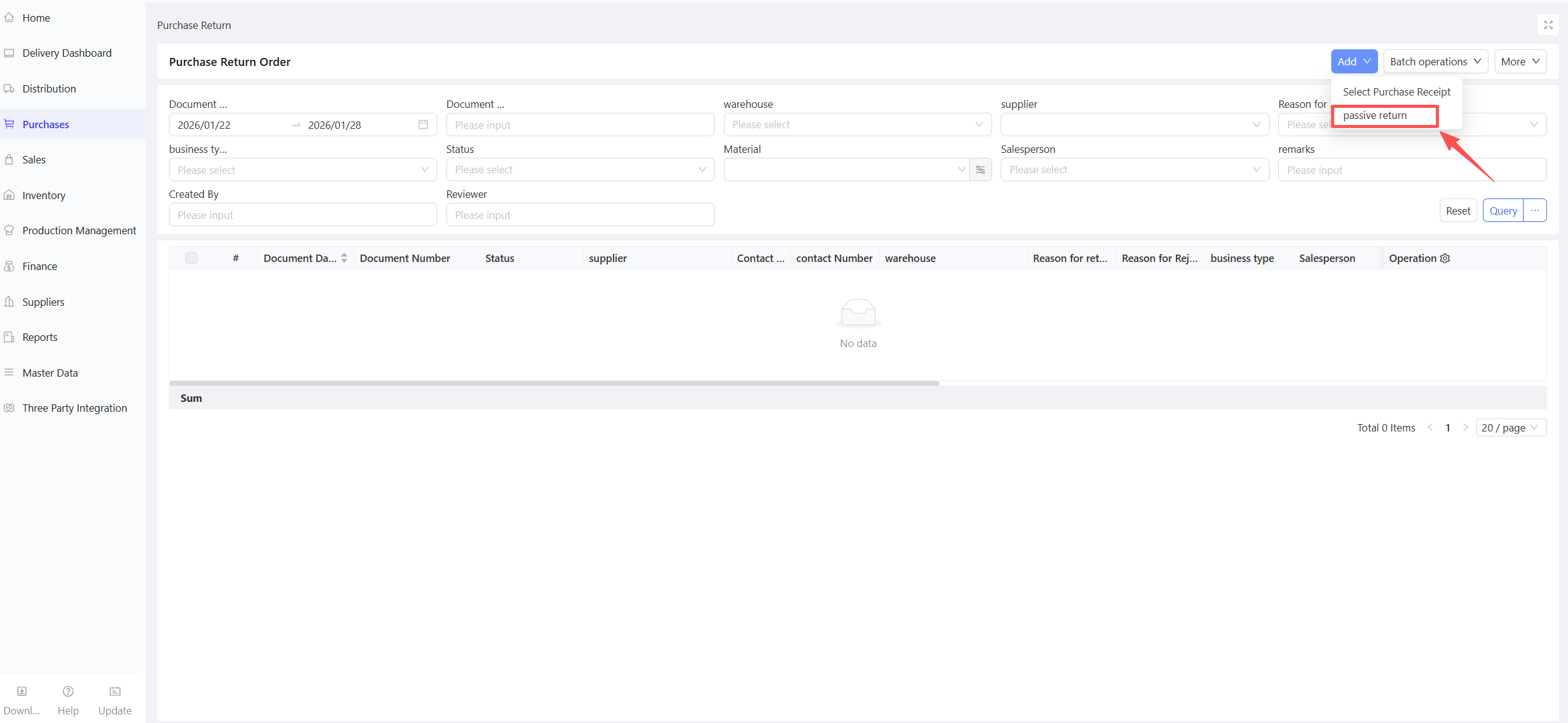 2.6 Purchase Return Order