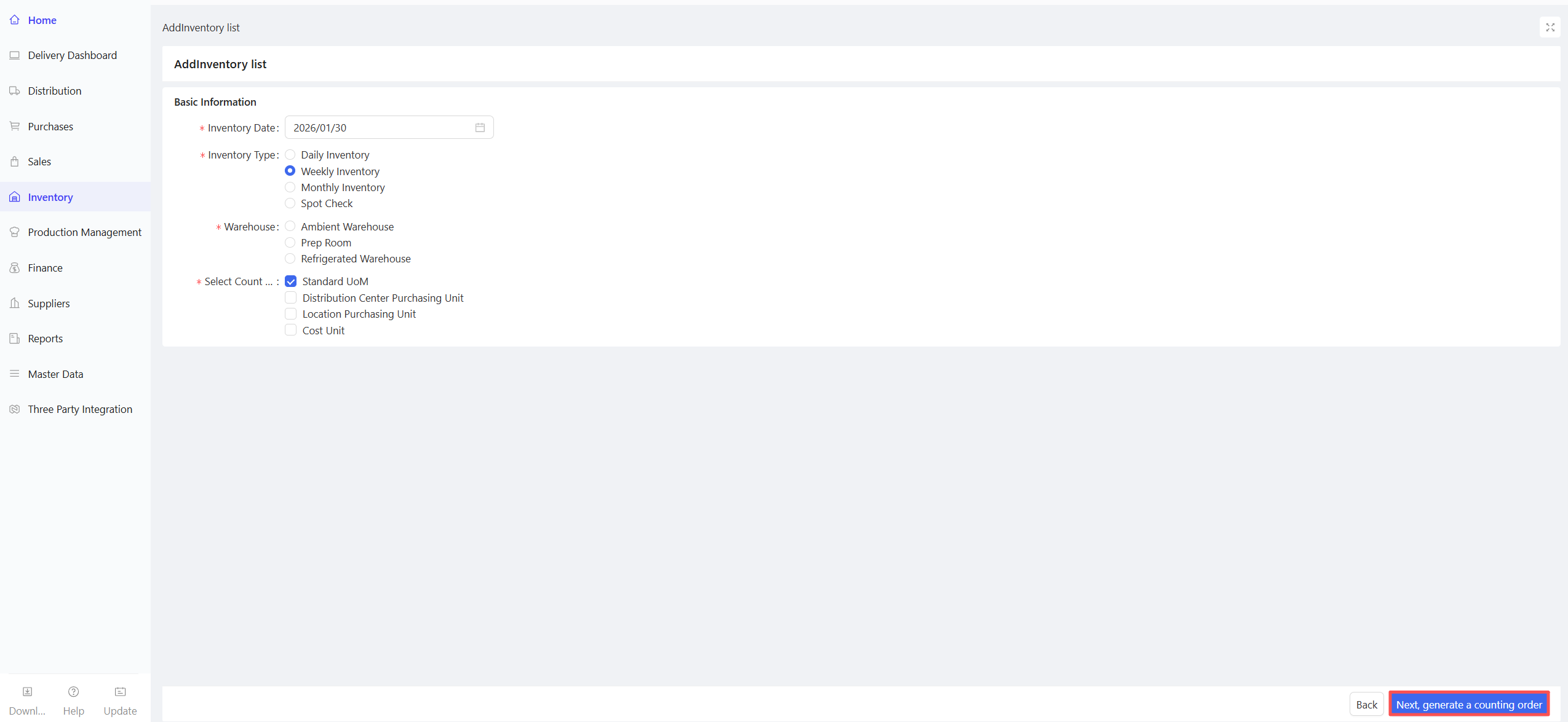 Central Kitchen-Supplier Collaboration: Warehouse staff of the distribution center determine specific procurement needs through procurement plans. Procurement personnel conduct offline sourcing based on the procurement plan list, confirm specific suppliers and procurement prices, and then initiate purchase orders in the system.