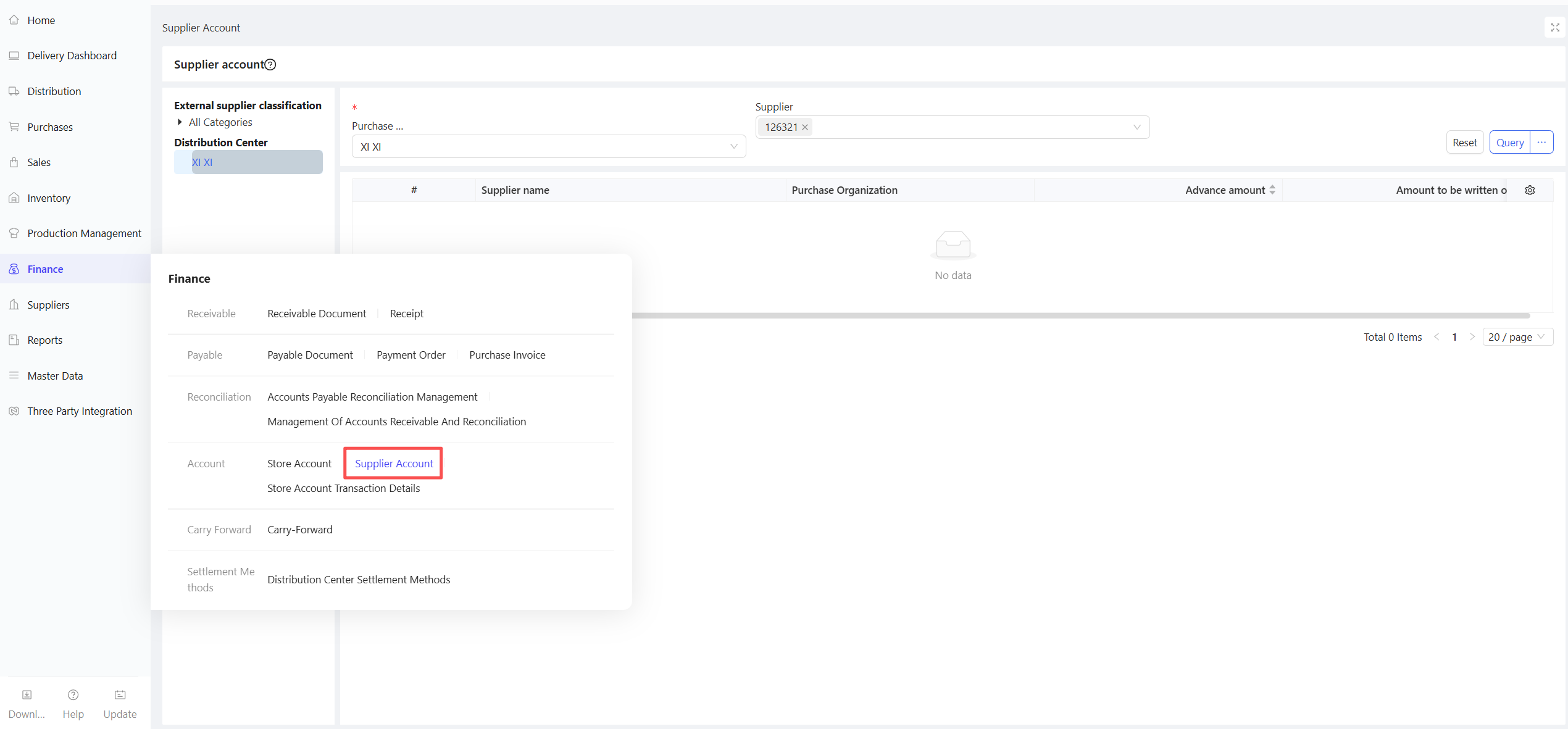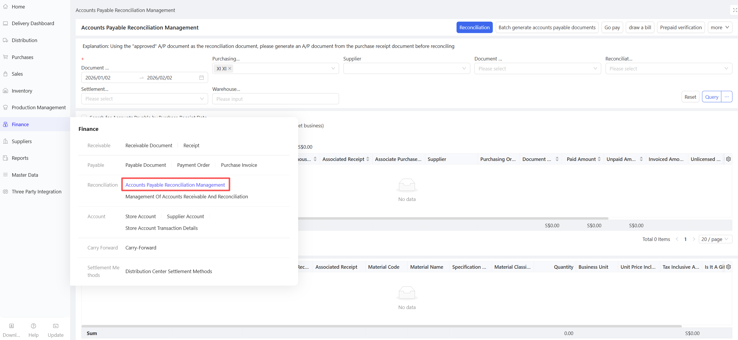This function is used for reconciliation between the distribution center/stores and external suppliers. Accounts payable orders can be reconciled only after approval. It supports batch generation of accounts payable orders, reconciliation, payment, prepayment verification, and invoicing in one integrated module.