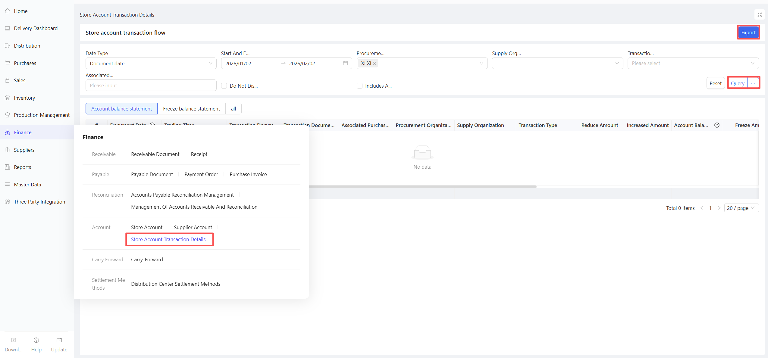 - Account Balance: The remaining amount after prepayment or payment verification between the distribution center/store and the supplier.