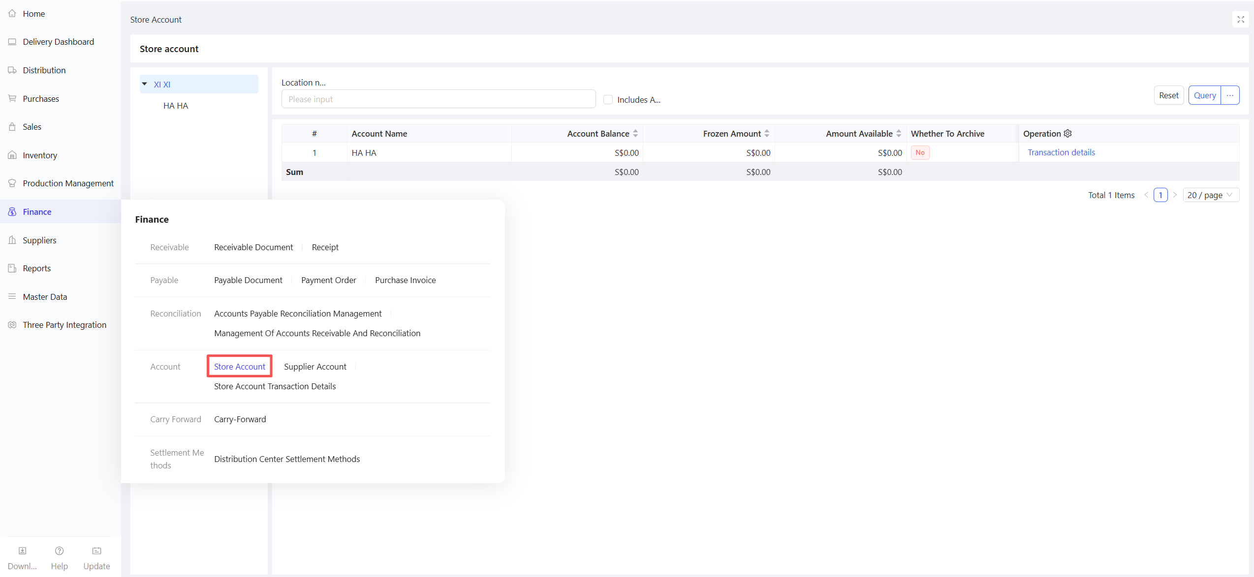 Go to Group View/Distribution Center View/Store View > Supply Chain > Financial Management > Store Account.