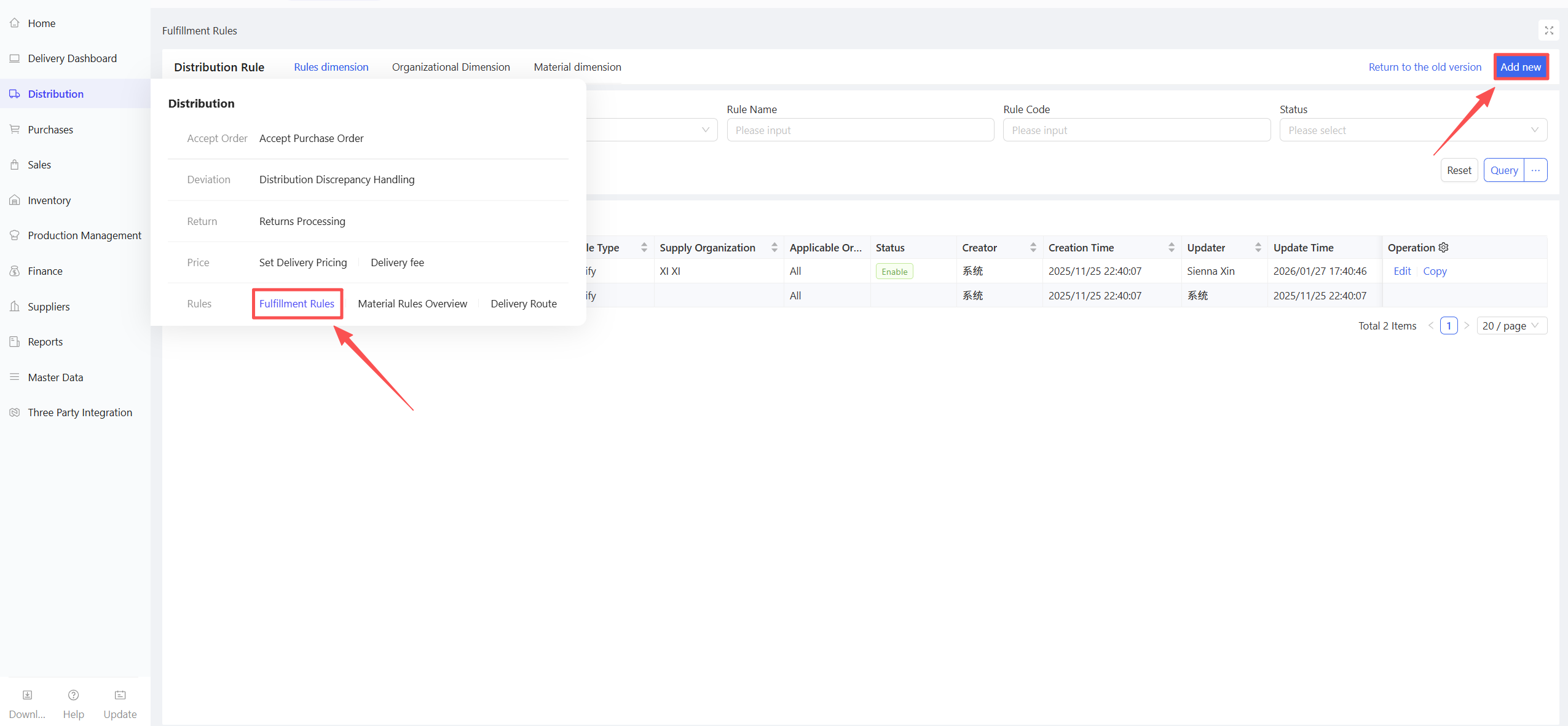 - Click Procurement Plan Dashboard; the system will automatically match suppliers based on distribution rules and supplier quotations (adjustments are allowed).