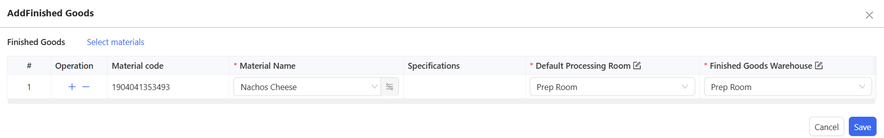 - Confirm Materials, Warehouse, and Procurement Quantity.