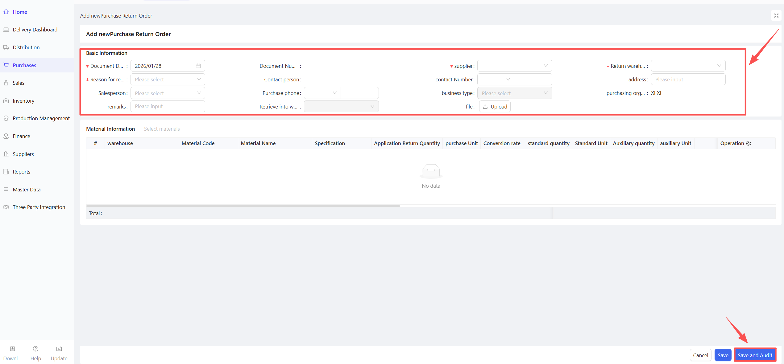 The purchase return order serves as a core instruction for cross-departmental collaboration in handling returns, avoiding process confusion and data discrepancies. Multiple return modes flexibly meet the needs of enterprises with varying levels of management maturity.