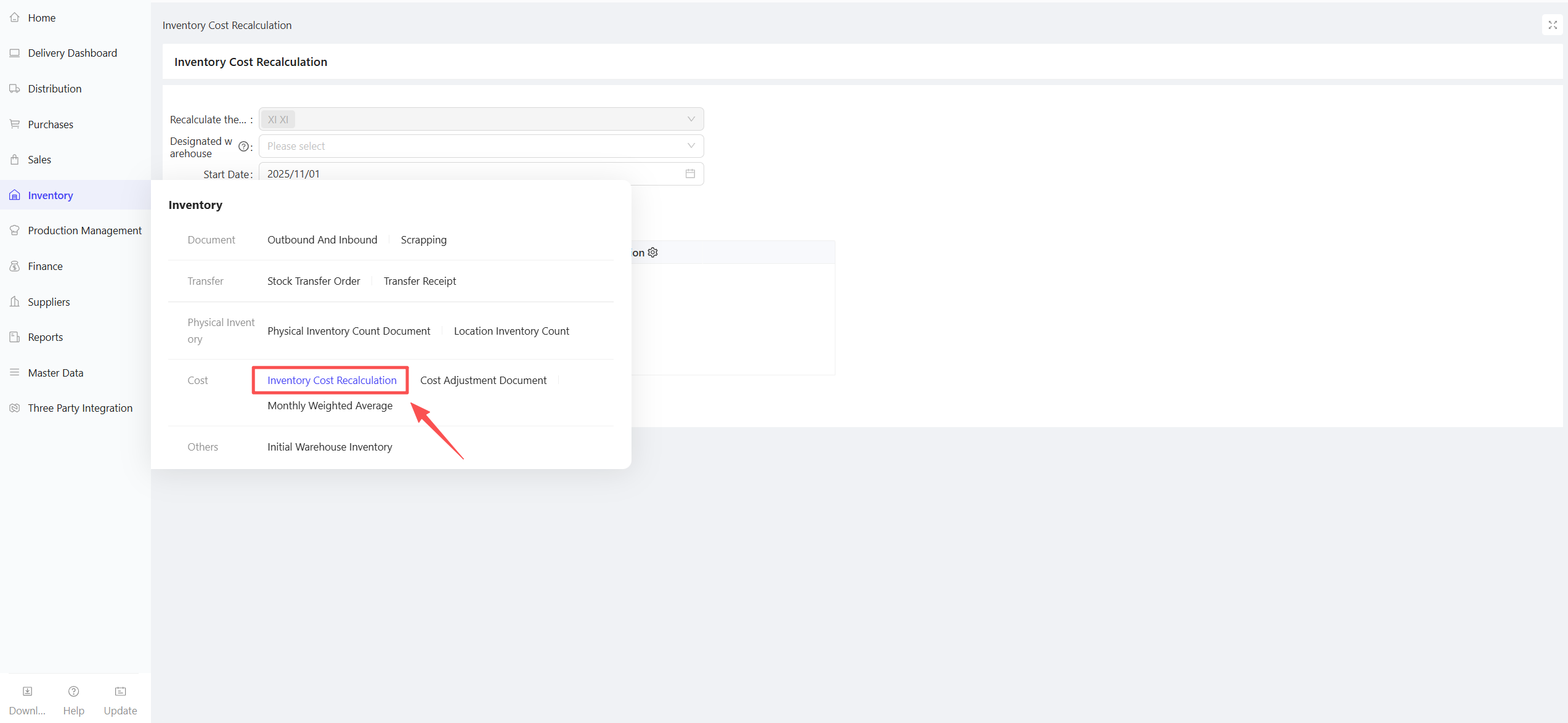 - Last warehousing price → Last warehousing return price → Latest quotation (supplier quotation/fixed selling price in distribution agreement) → Manual entry.