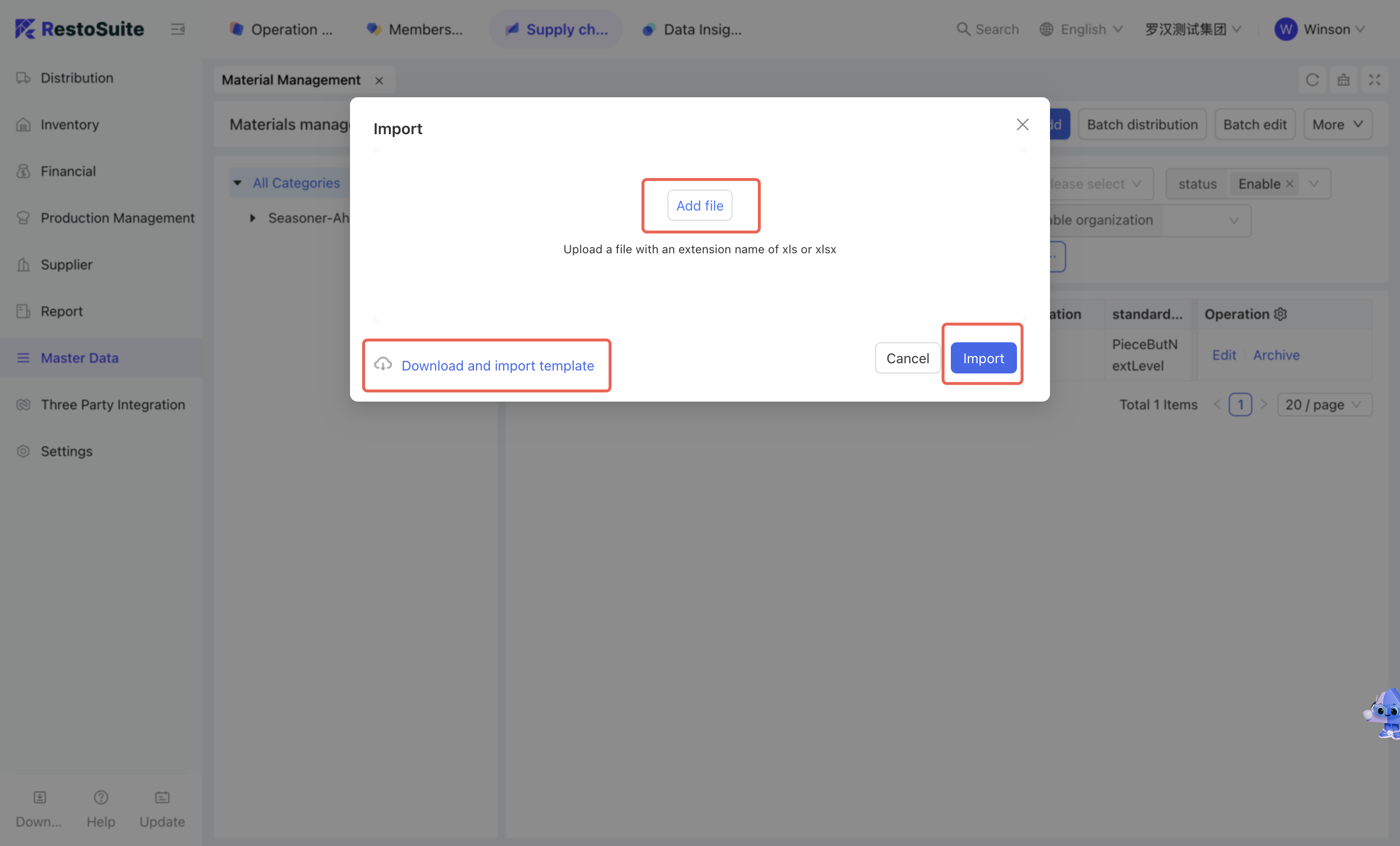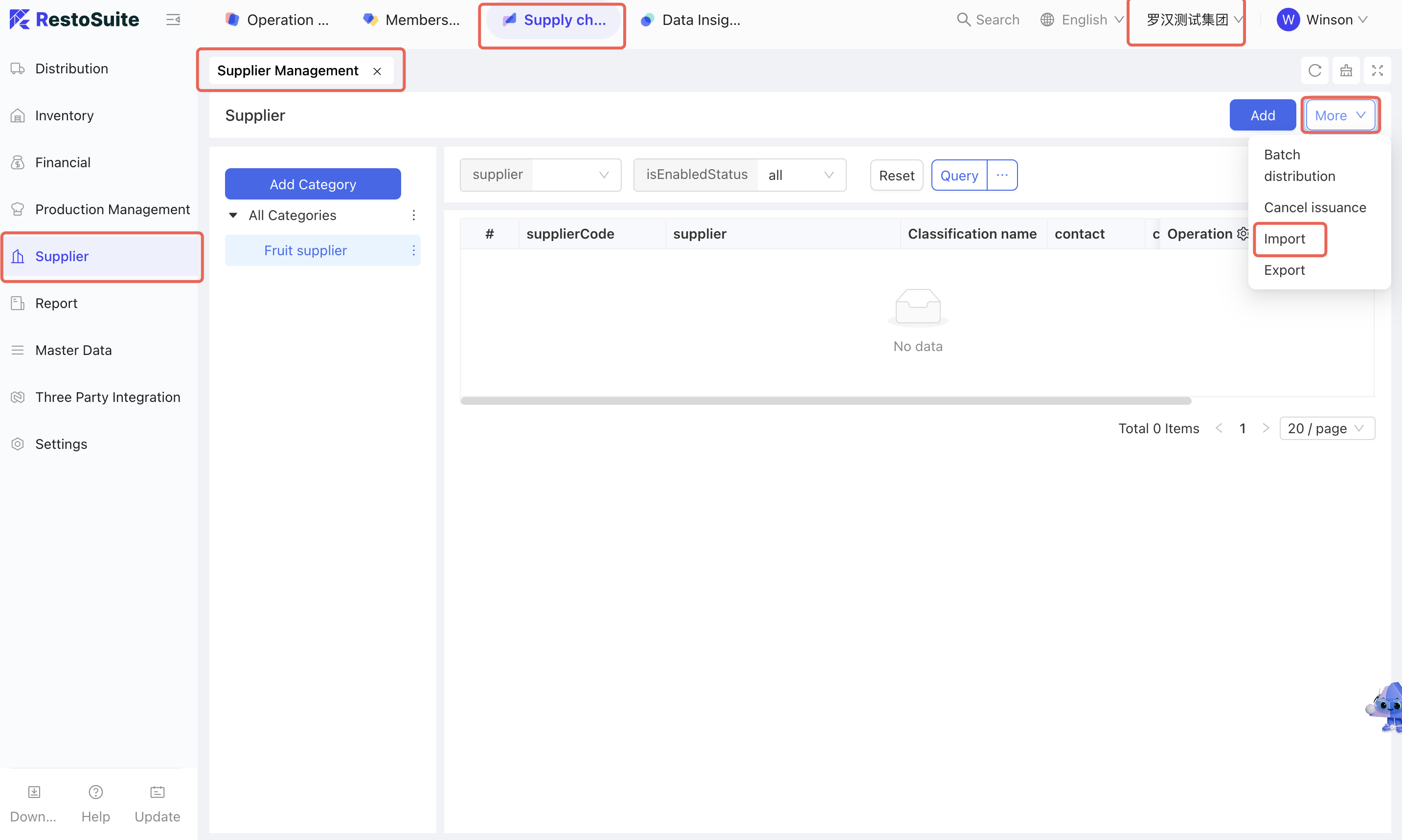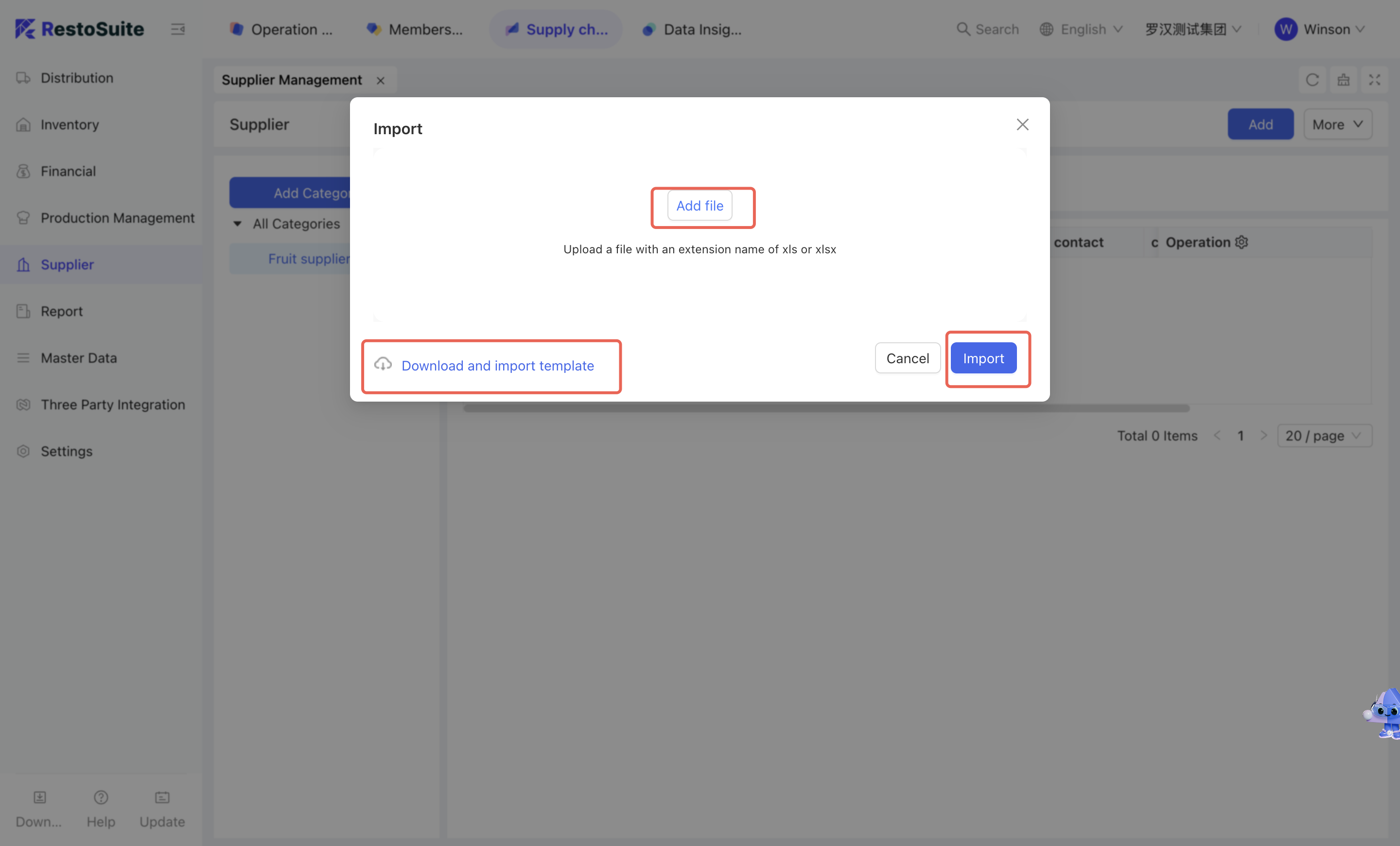 - Click [More - Import] → Download the supplier import template and sort out supplier information according to the template