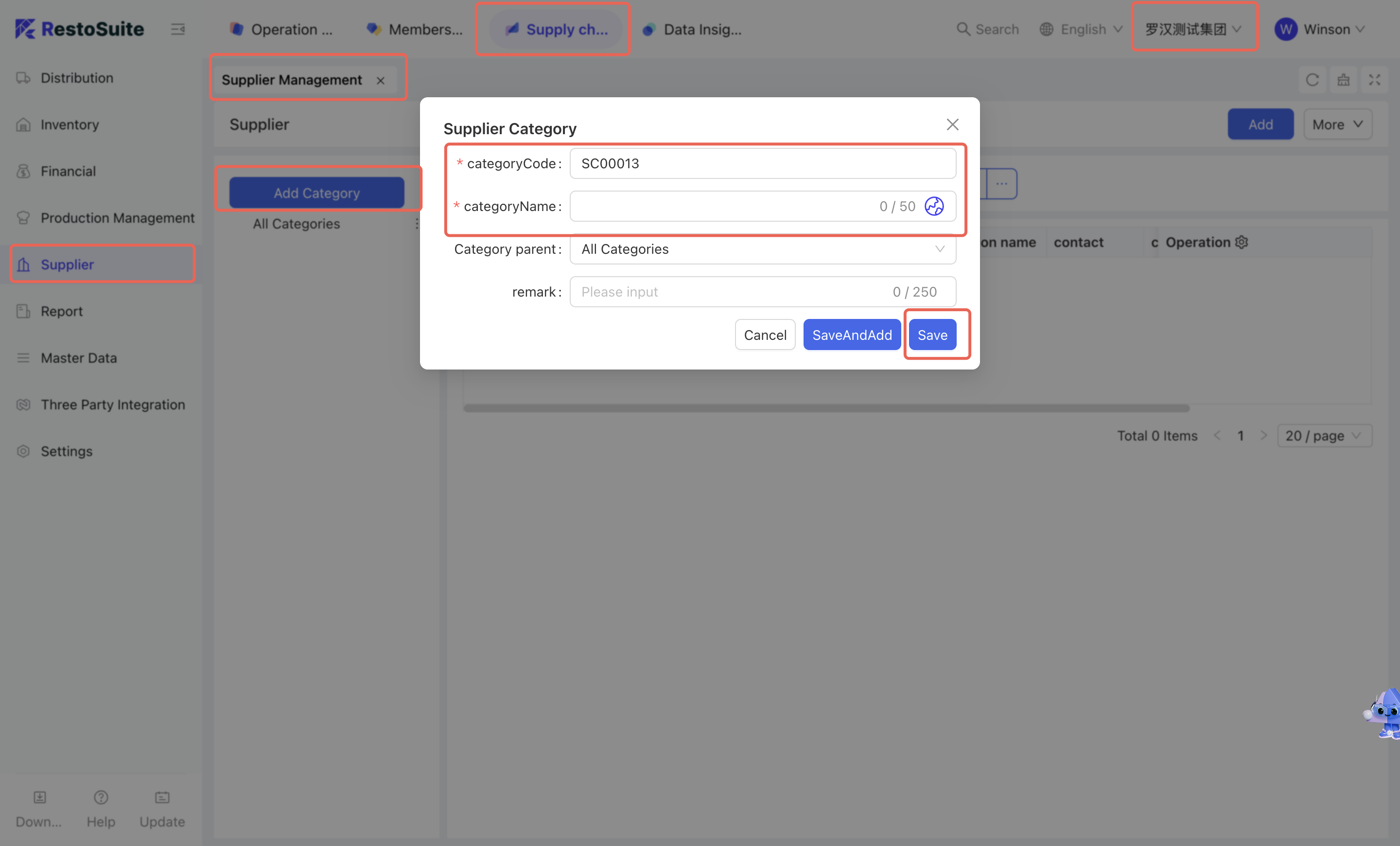 - Click [Add Category] → Maintain category code and category name