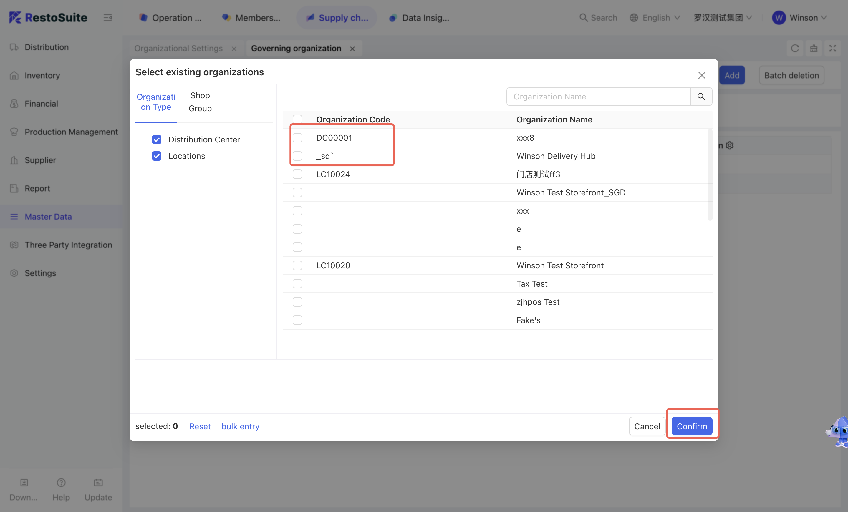 - Select [Distribution Center/Applicable Store/Organization] : Select the warehouse affiliation based on the warehouse type