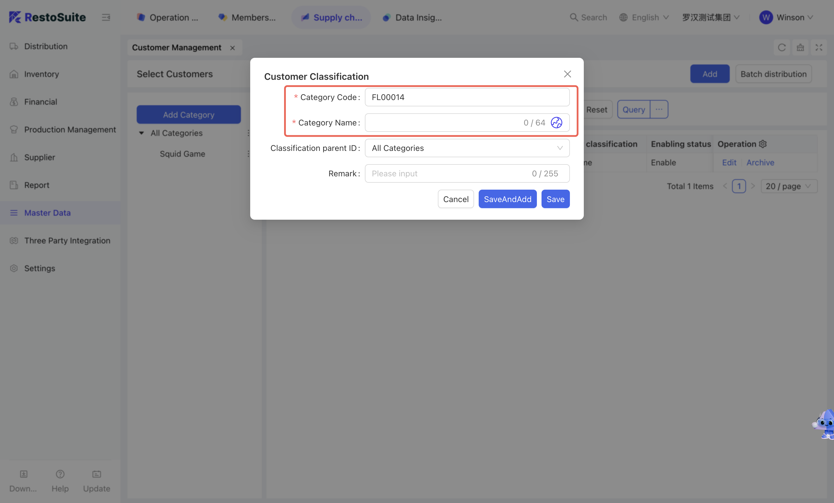 - Click [Add Category] → Maintain customer category code and category name → Click [Save].