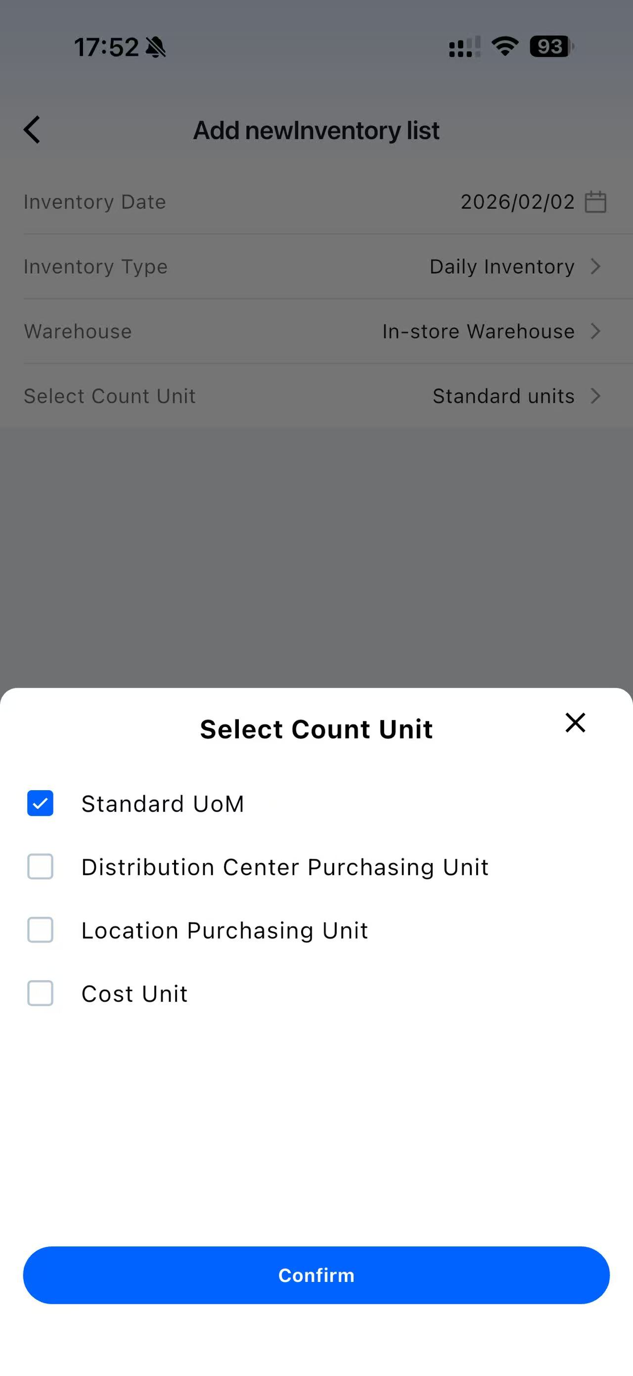 - [Homepage] → [Inventory Count] / [Inventory Count List] → Create New Inventory Count: