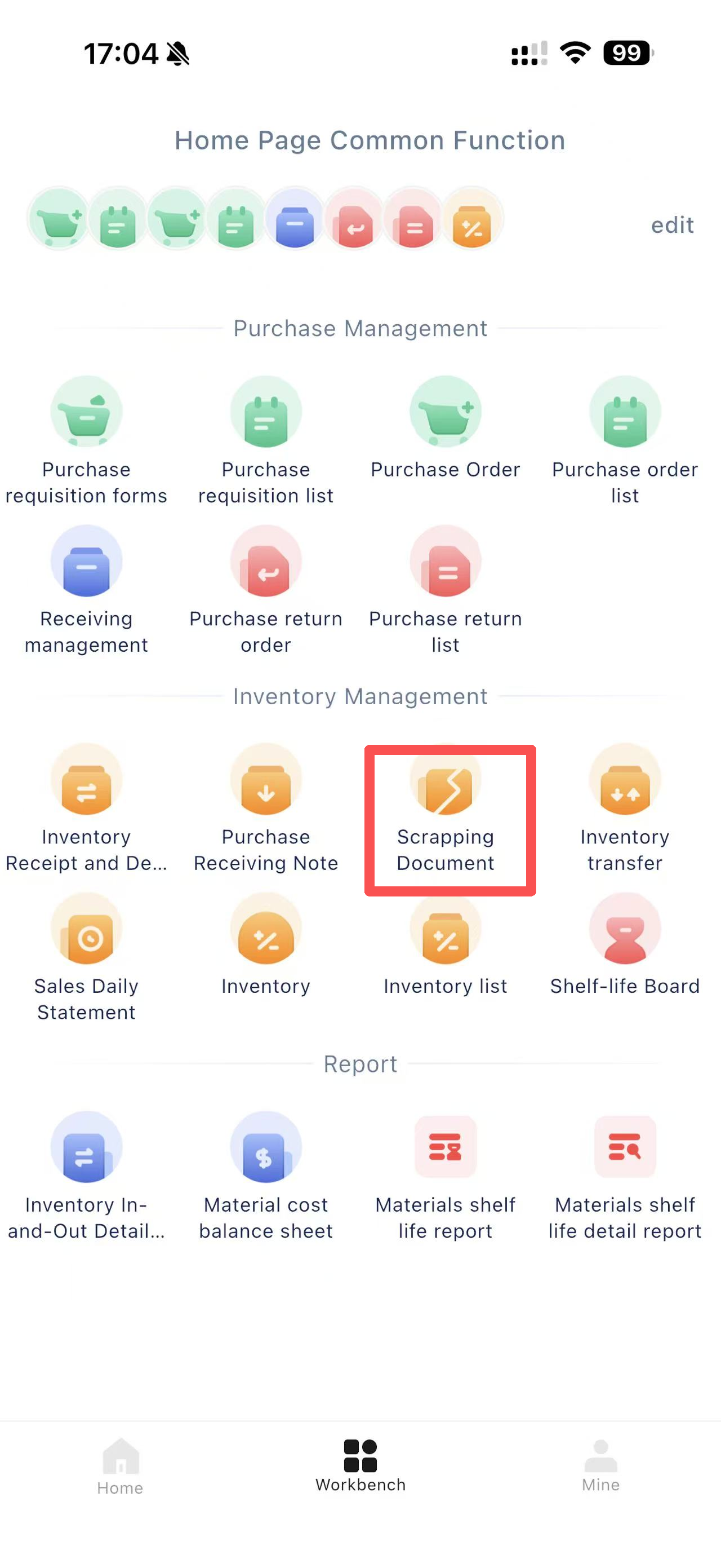 - [Workbench] → [Inventory Management] → [Loss Report].