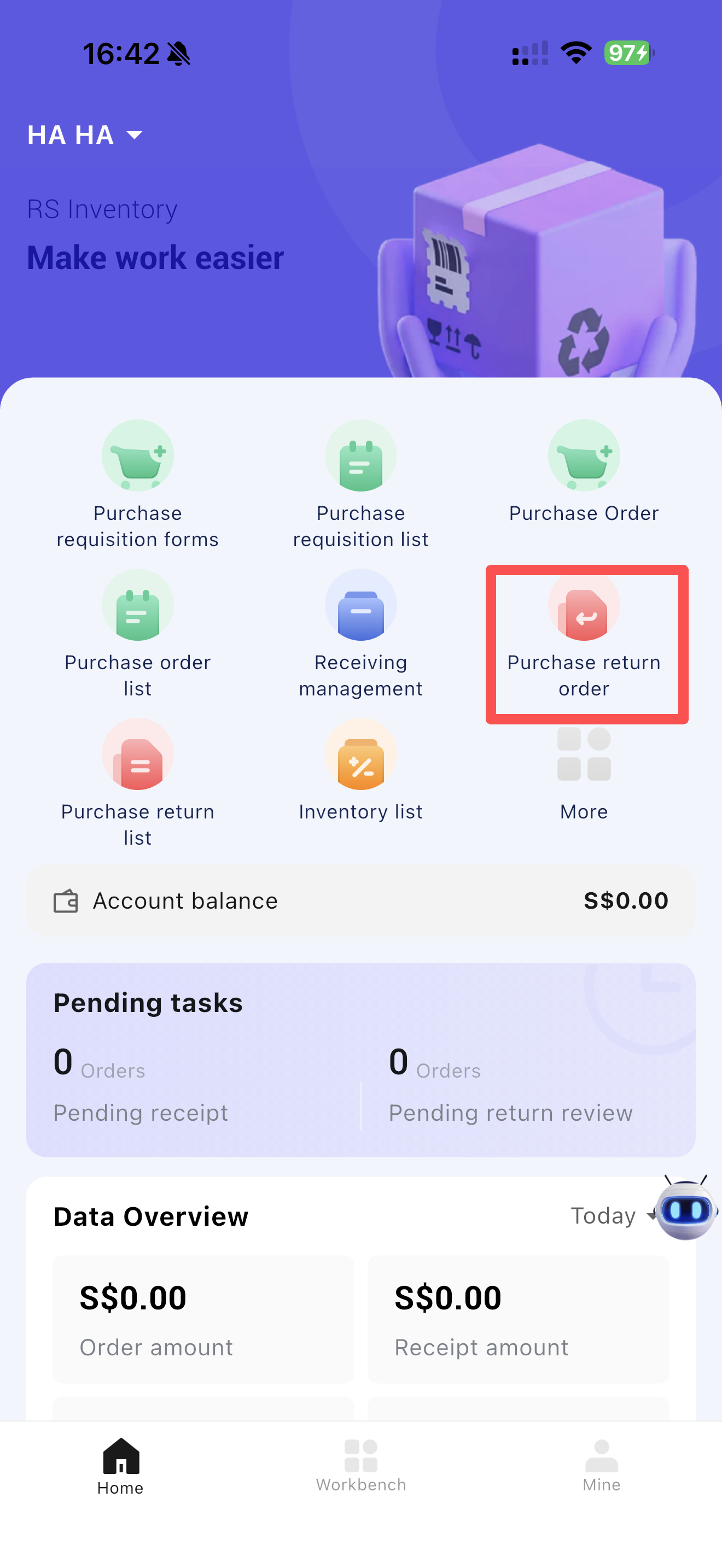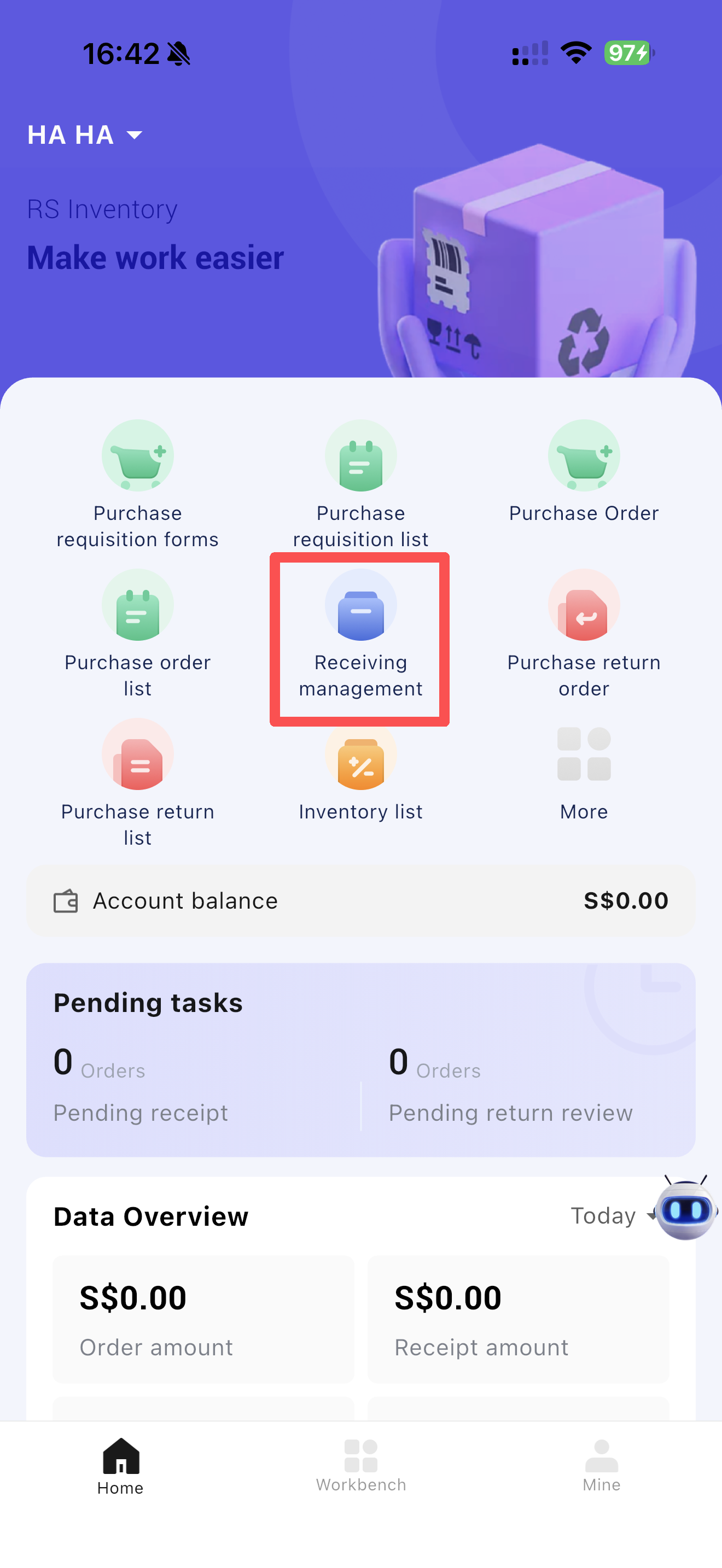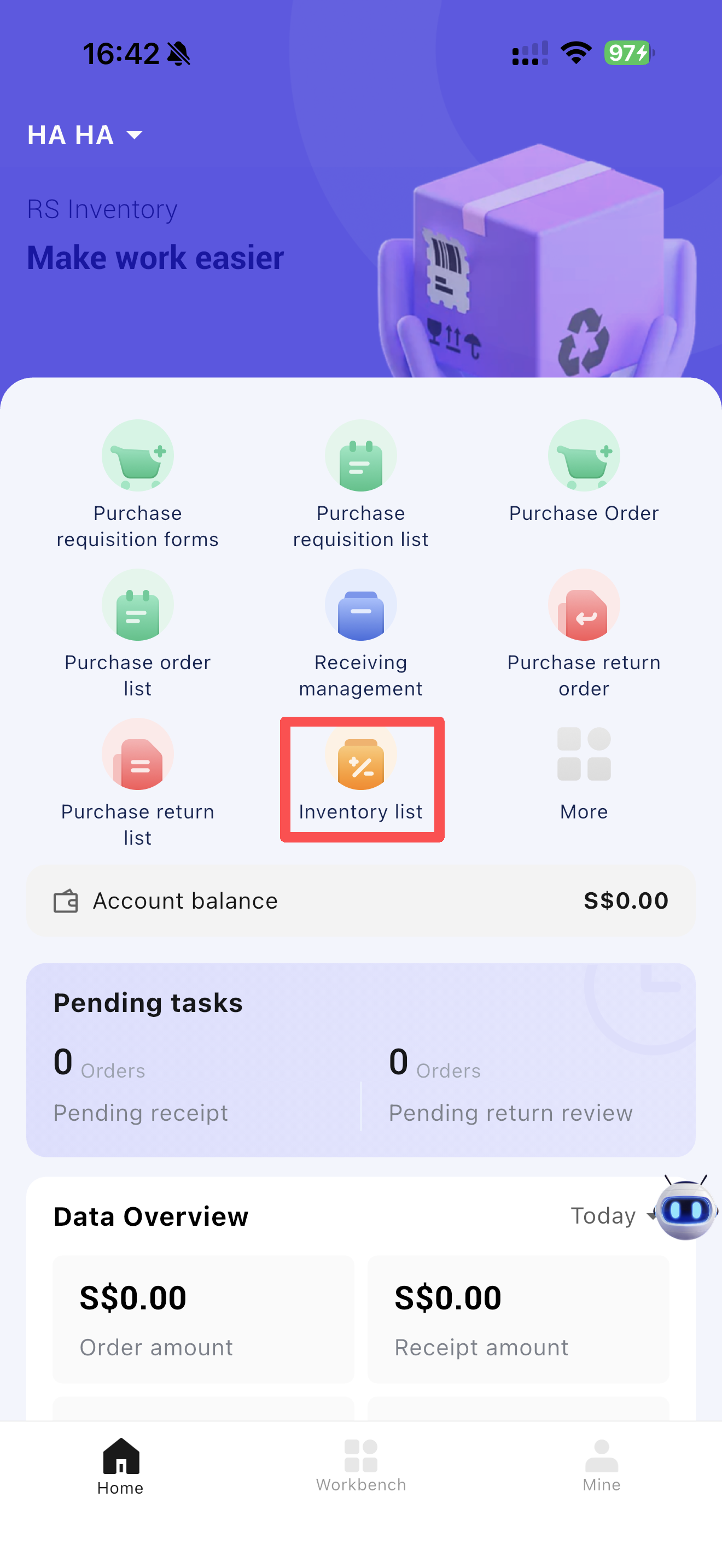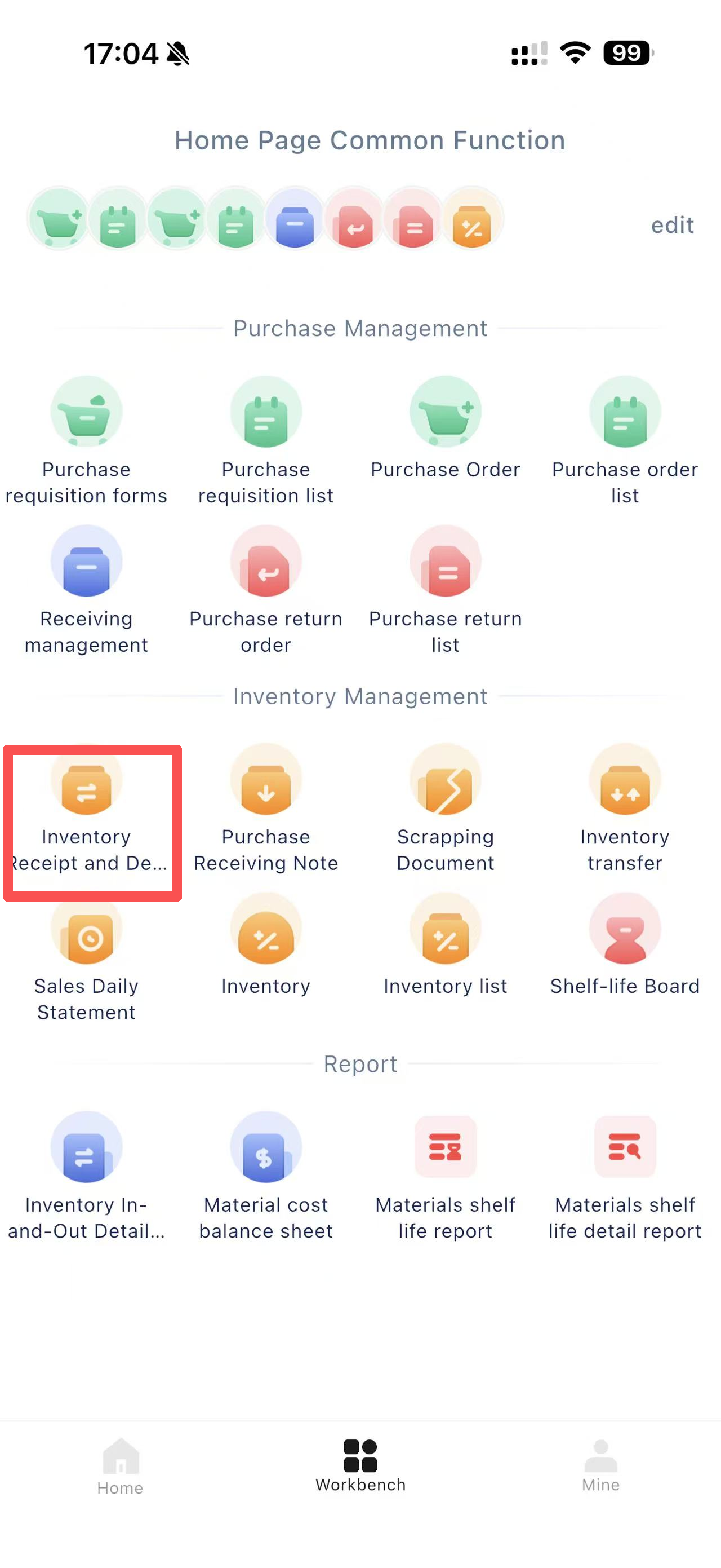 - [Workbench] → [Inventory Management] → [Inventory In/Out Orders], as detailed below: