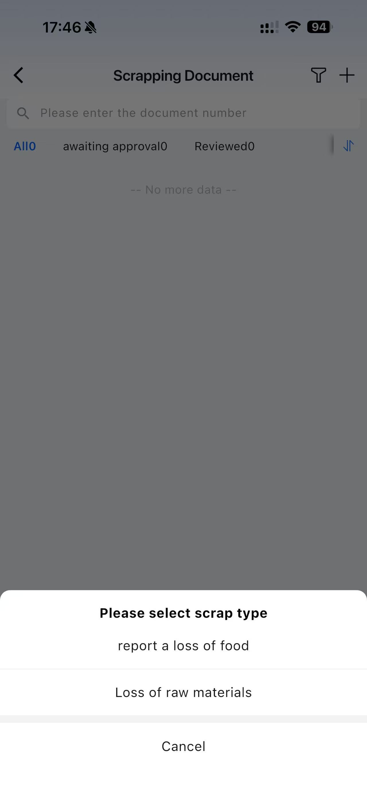- When creating a new loss report, two business types are supported: [Raw Material Loss] and [Dish Loss]. Selecting [Dish Loss] will deduct corresponding raw materials based on the dish’s cost structure.