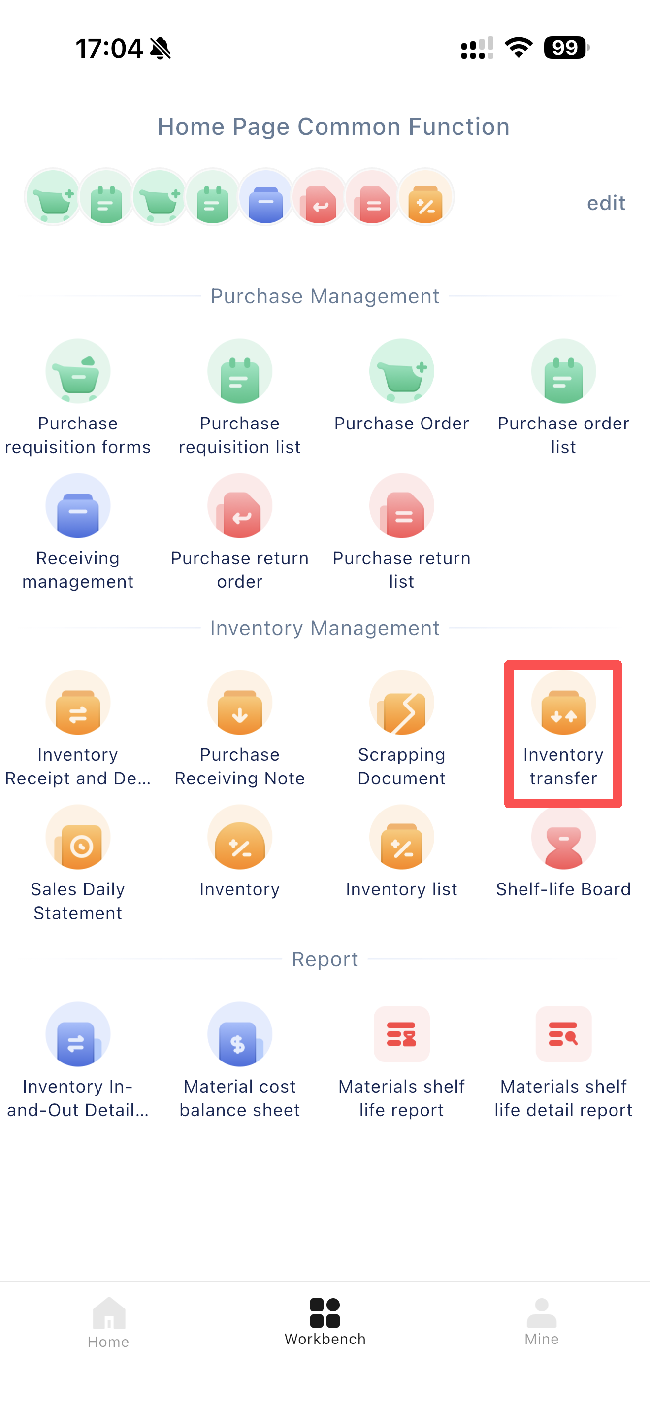 - [Workbench] → [Inventory Management] → [Inventory Transfer]