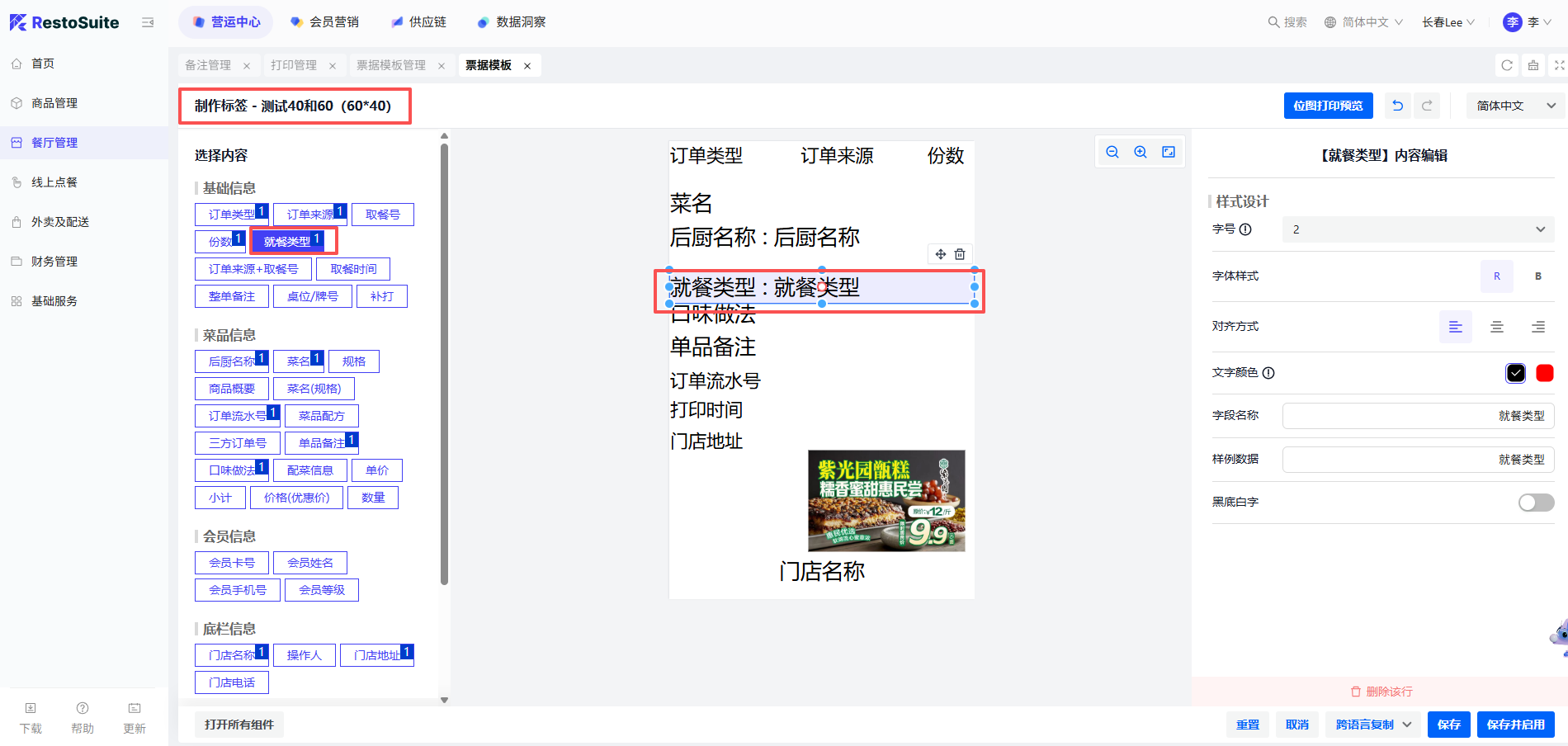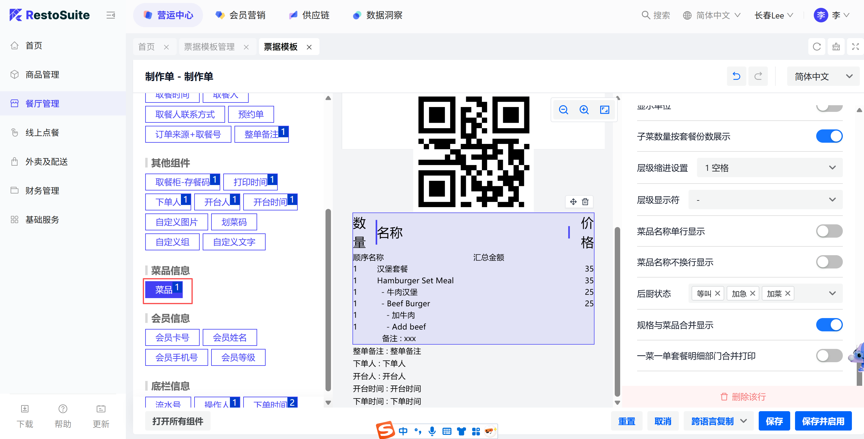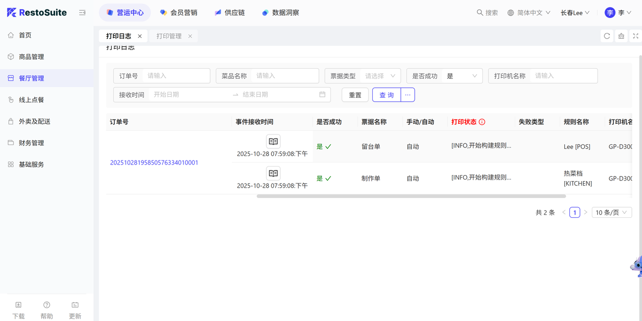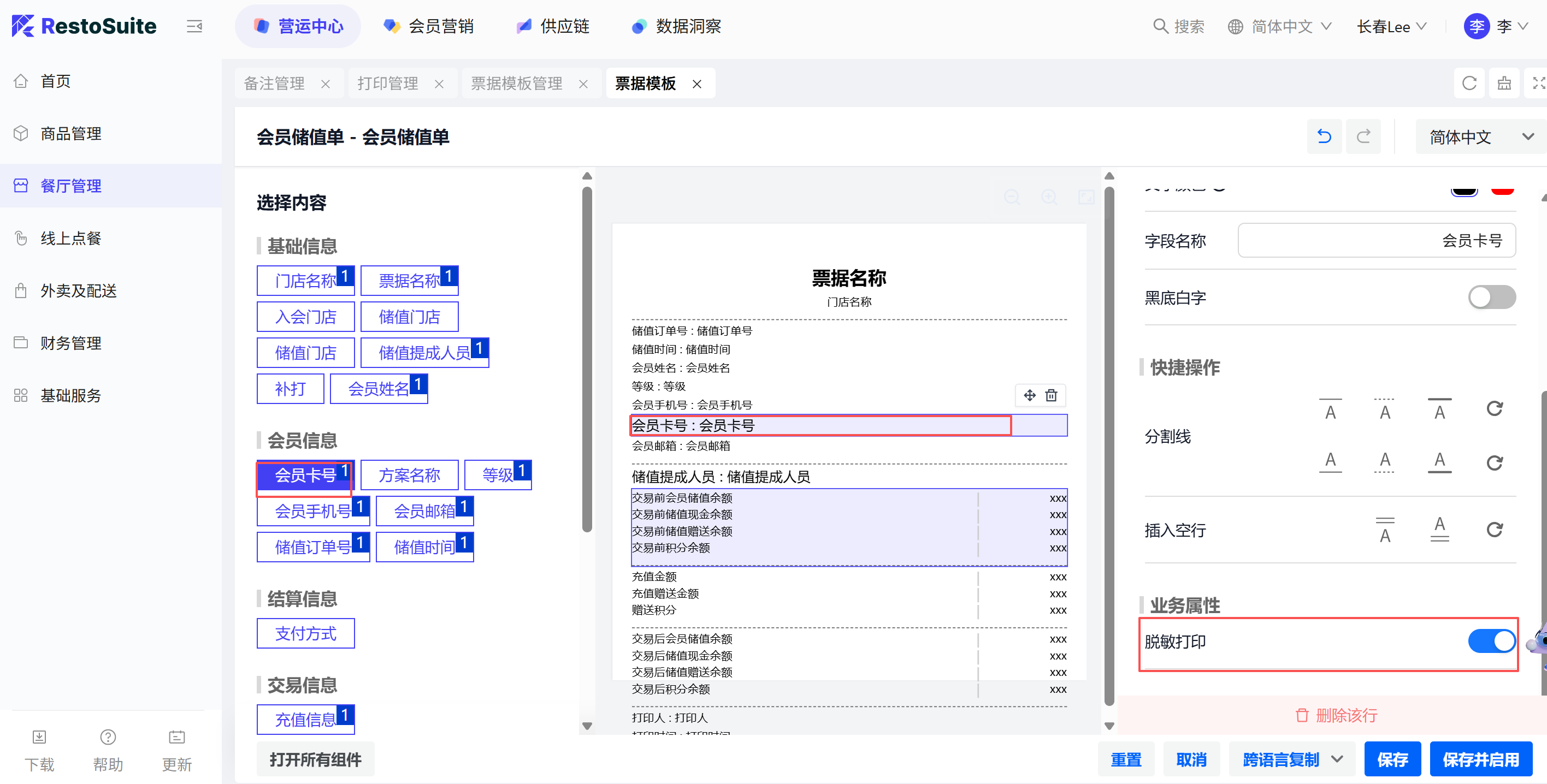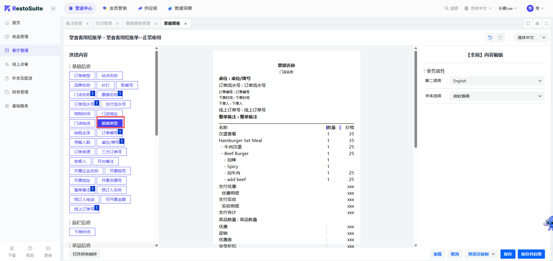 - 使用场景:在结账完成页,可以通过领收书魔板打印领收书小票;