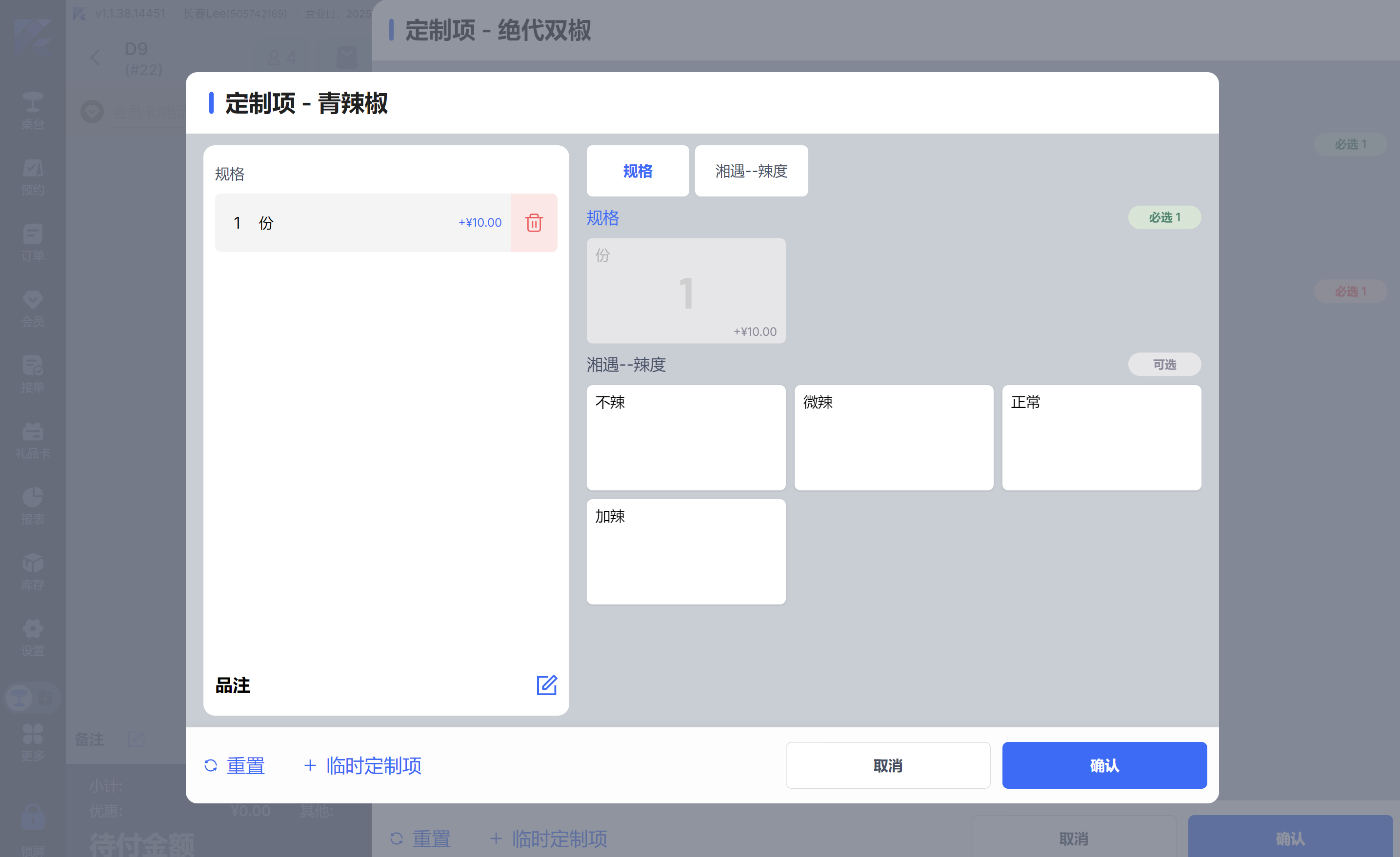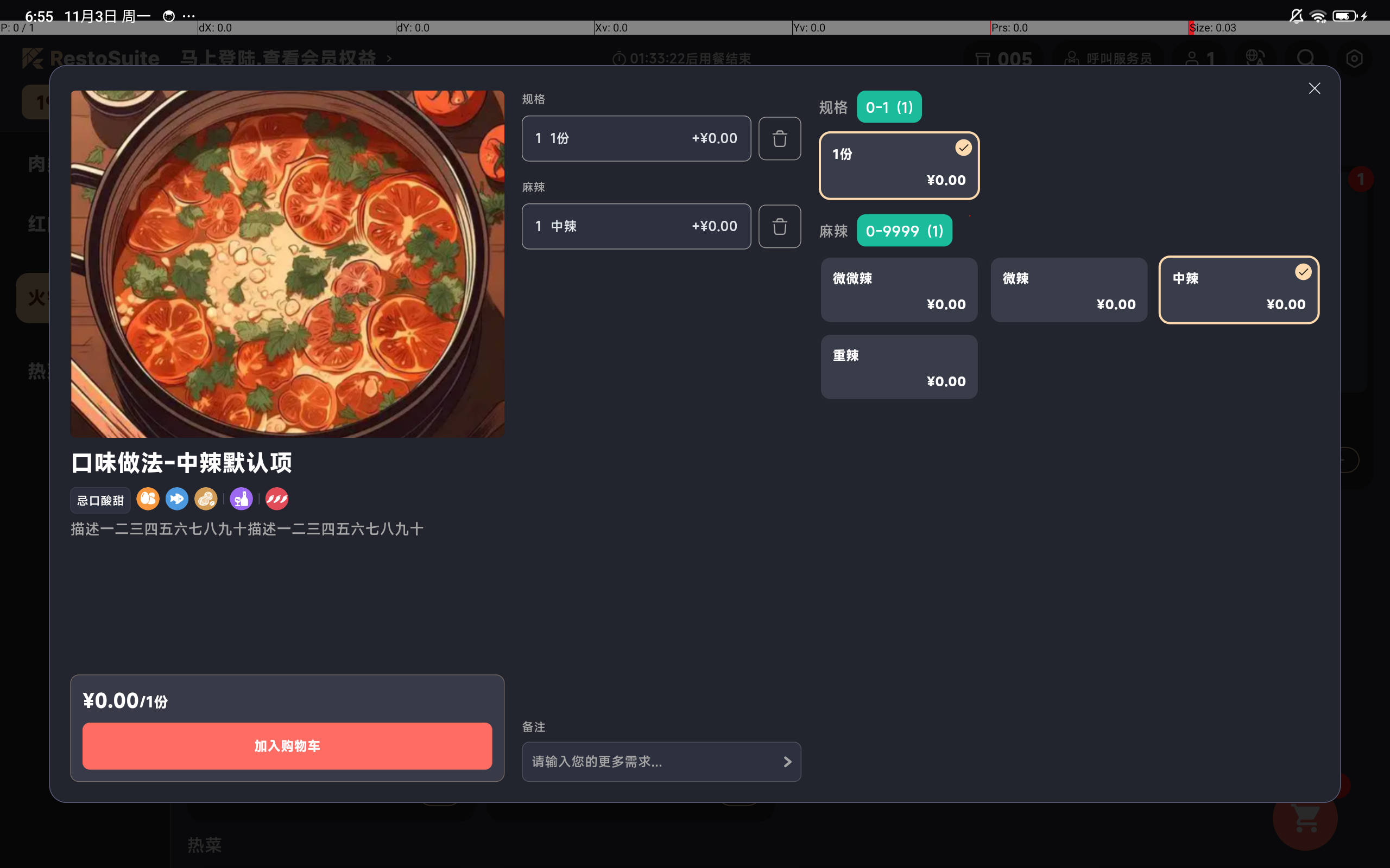 - 使用场景:主菜下的配菜支持选择配菜的口味做法;配菜如果设置了打包费时,也需要收取打包费;