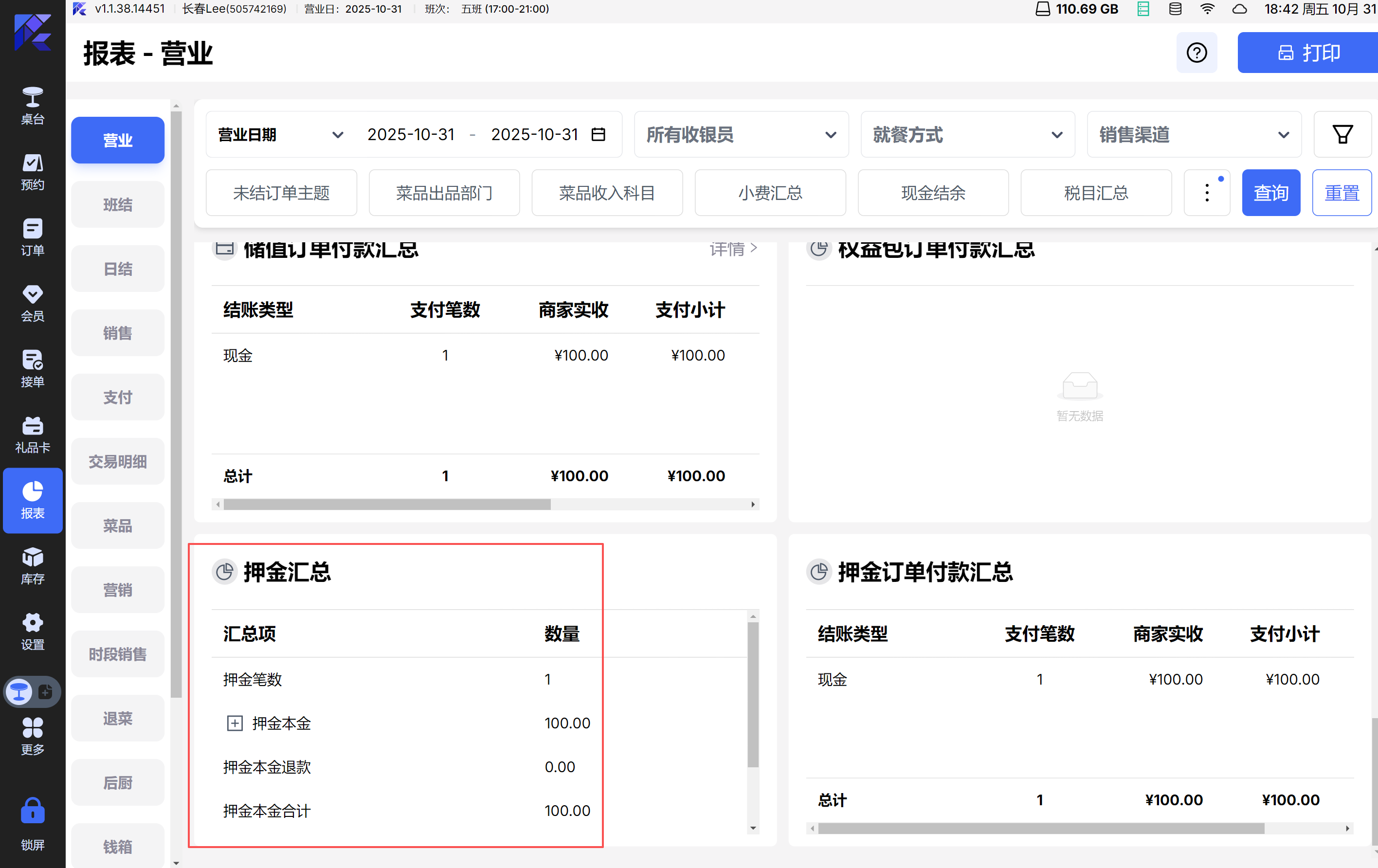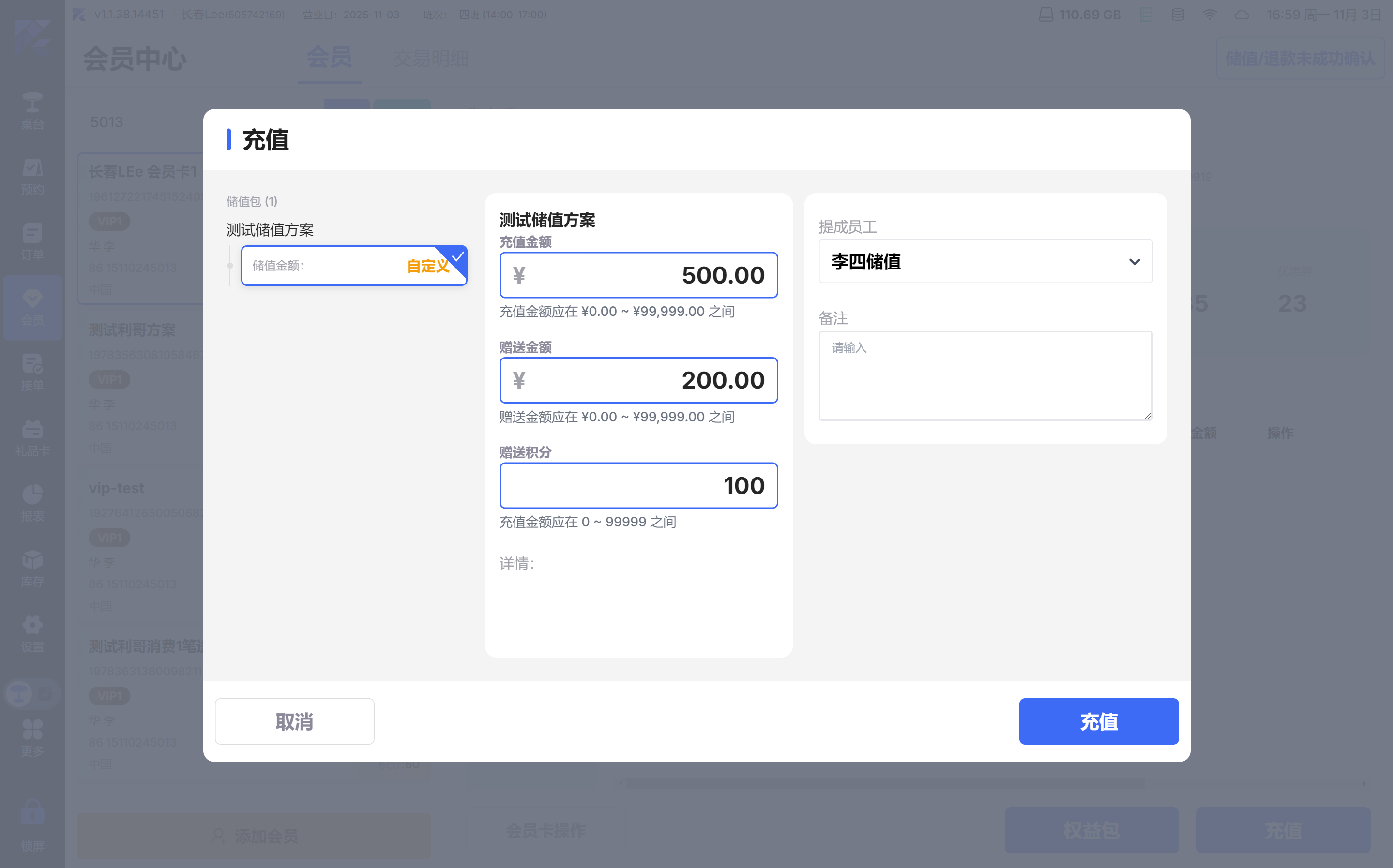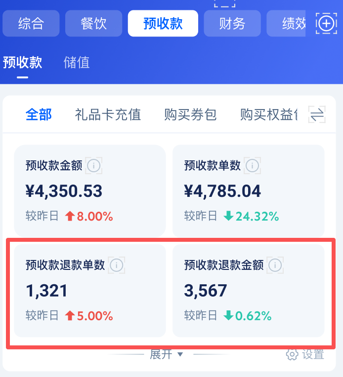 - 使用场景:客人储值后,马上退款或部分使用后的金额退款