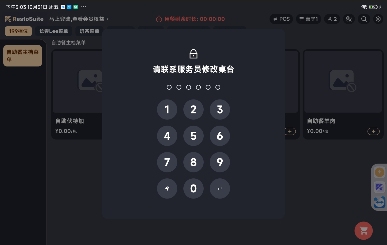- 使用场景:自助餐菜品设置了按桌、按人及下单时间限制后,已经限制的菜品,可以通过有对应权限的人员授权后,临时解决授权,解决熟人找店长可以取消限制;