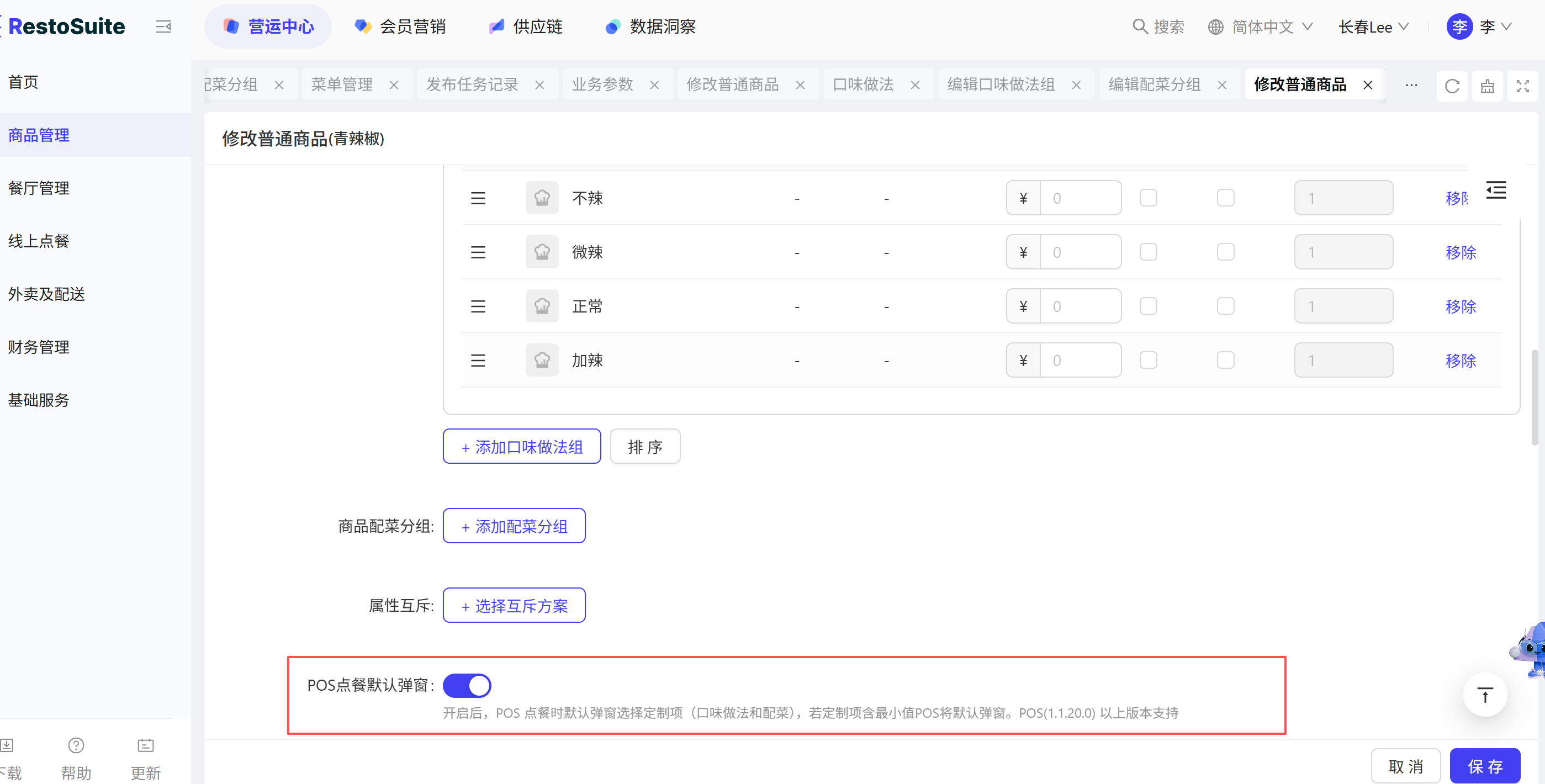 - 菜品作为套餐子菜,不再选择菜品设置的配菜,只能在口味做法弹窗选择子菜的口味做法;