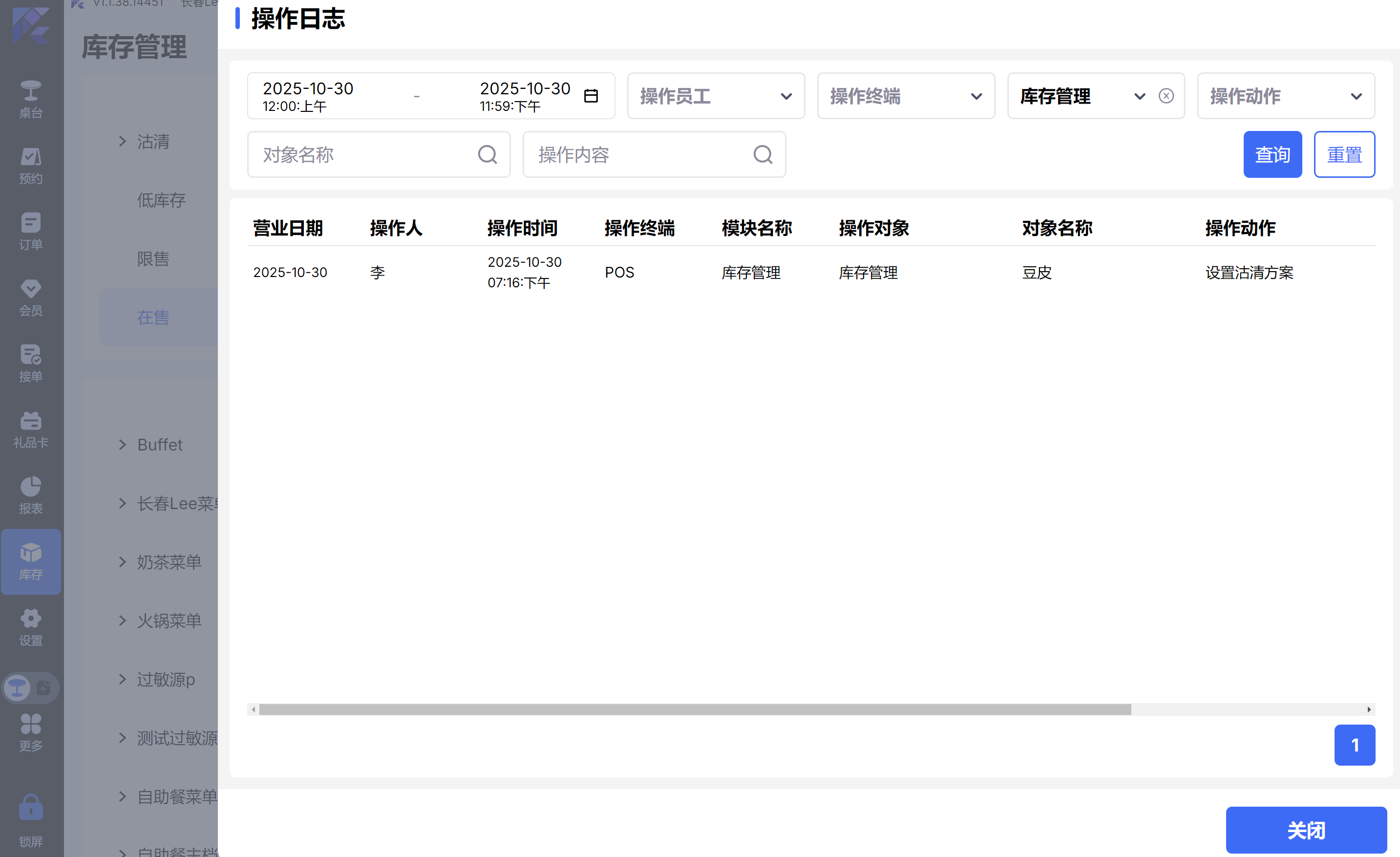 - 沽清日志:通过沽清界面的日志入口,查询沽清方面的操作日志;