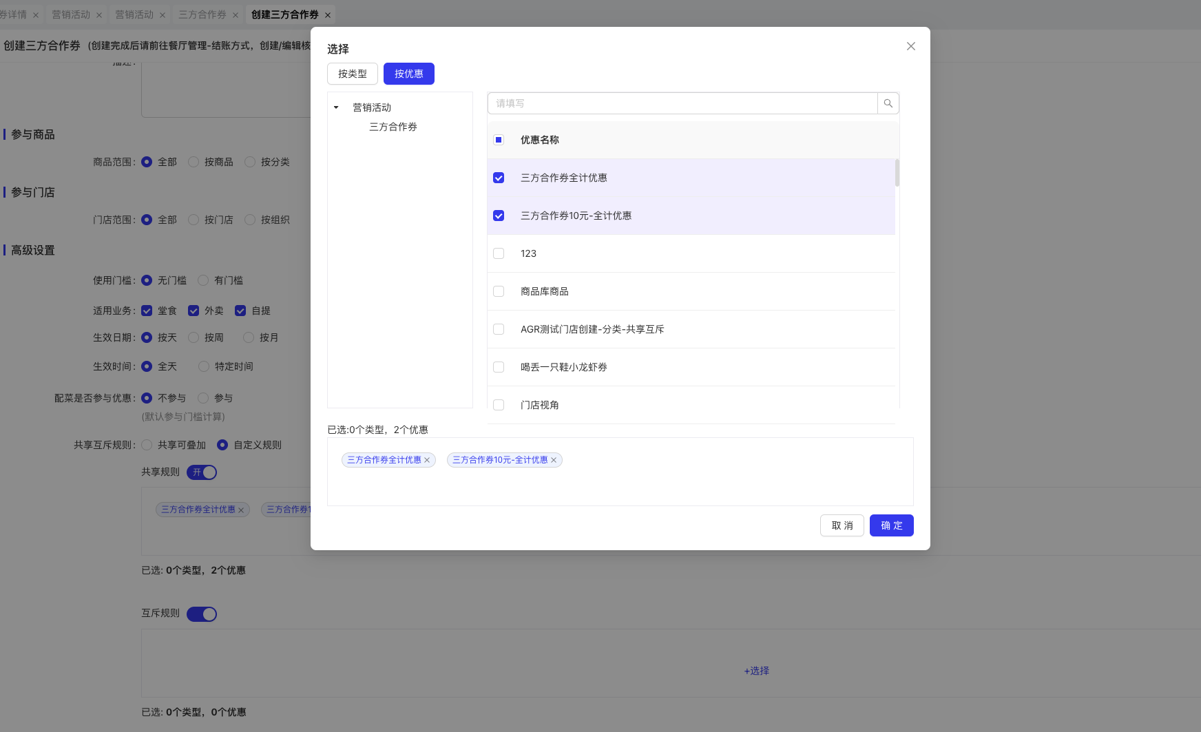 - 前置核销团购券,再次核销时支持券和优惠之间的共享互斥