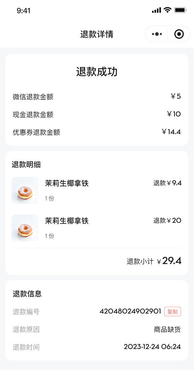 - 如果是跨月或部分权益已使用时,返回不能退款的原因;