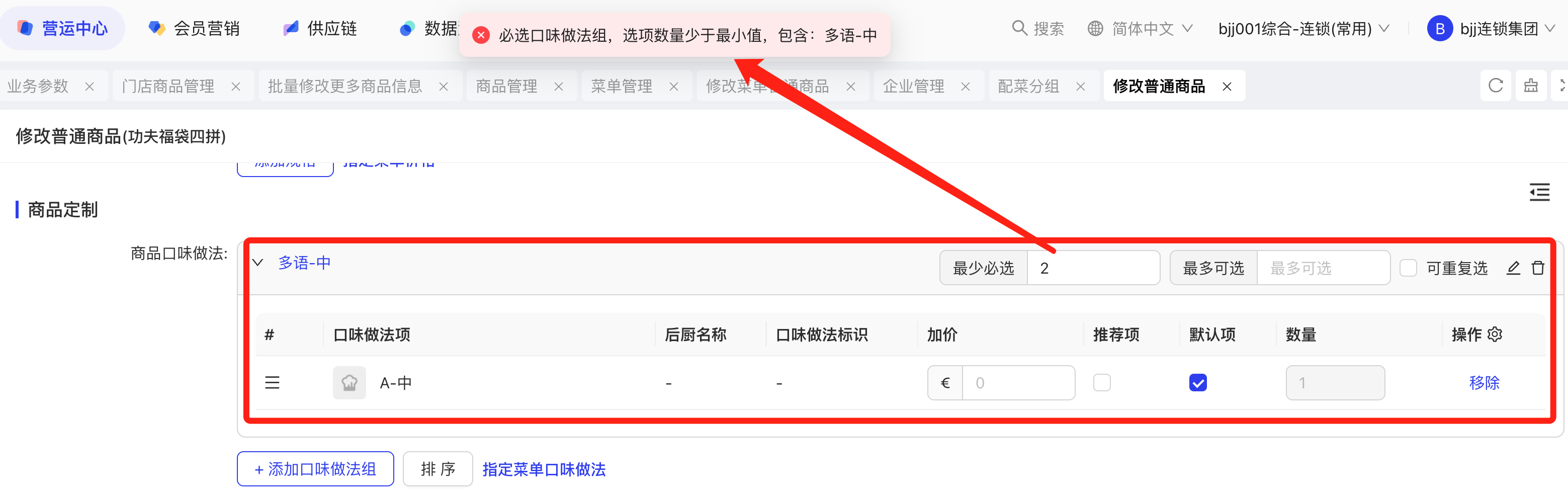 - BO 业务参数:套餐子菜忽略子菜配置的配菜 默认:关,上边的逻辑;
