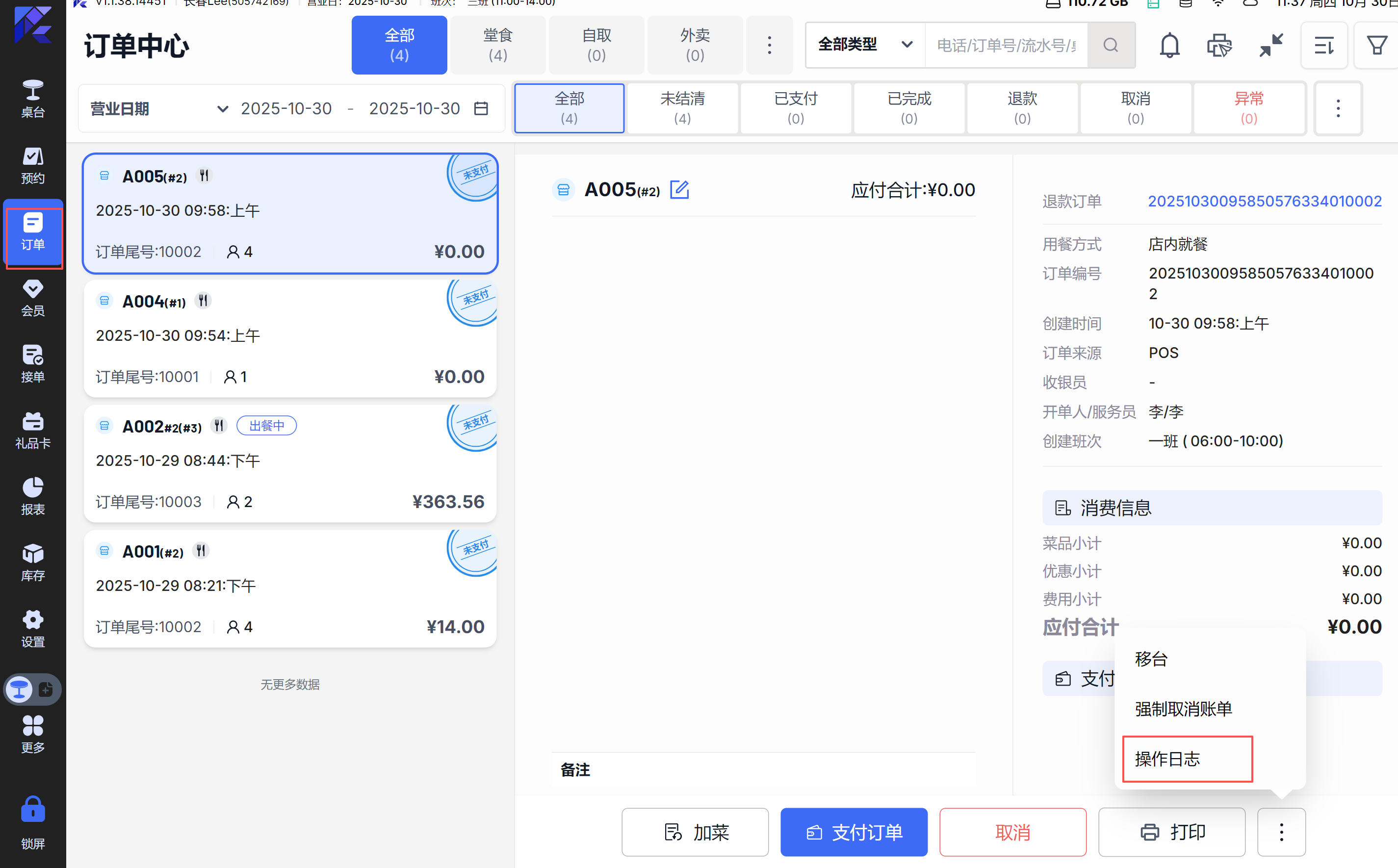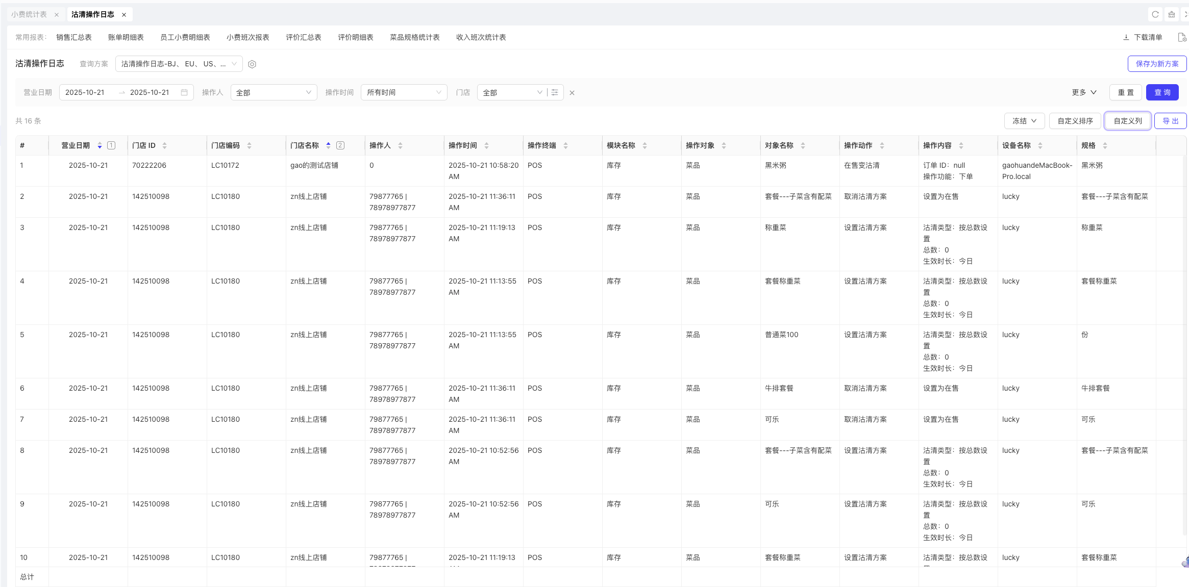 - 使用场景:查询账单及沽清的操作日志,通过日志有助于发现操作方面的问题