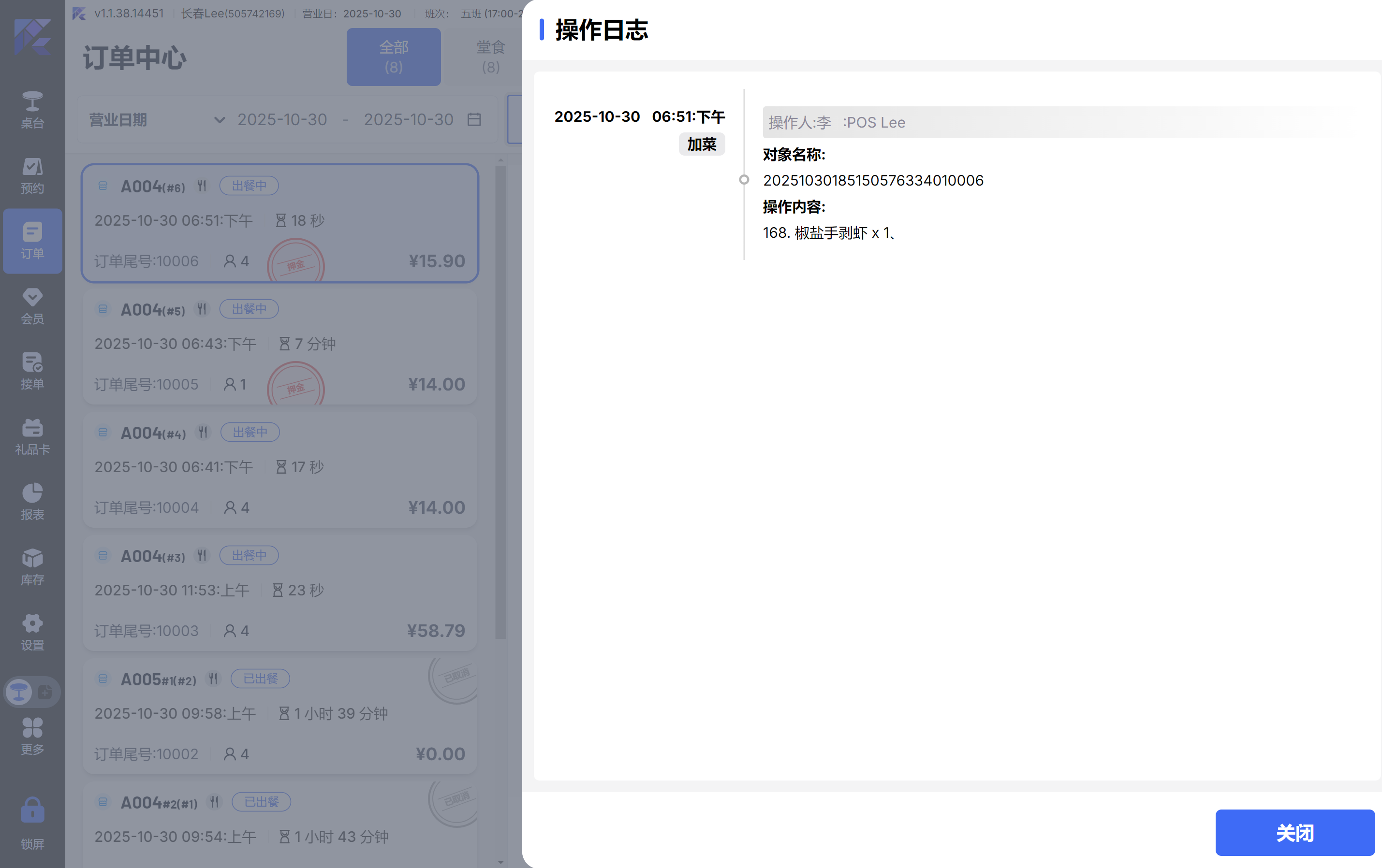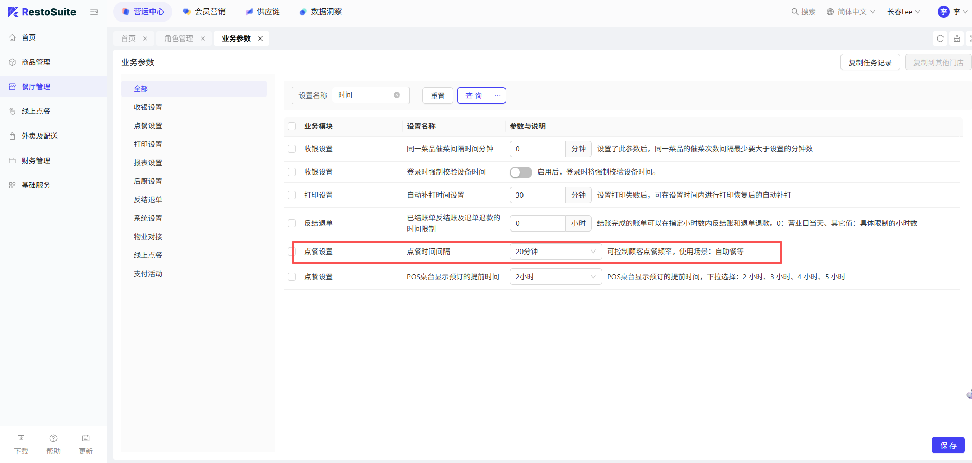 - 增加权限:下单间隔授权:解除在 BO 业务参数里设置的 下单时间间隔的点餐限制;