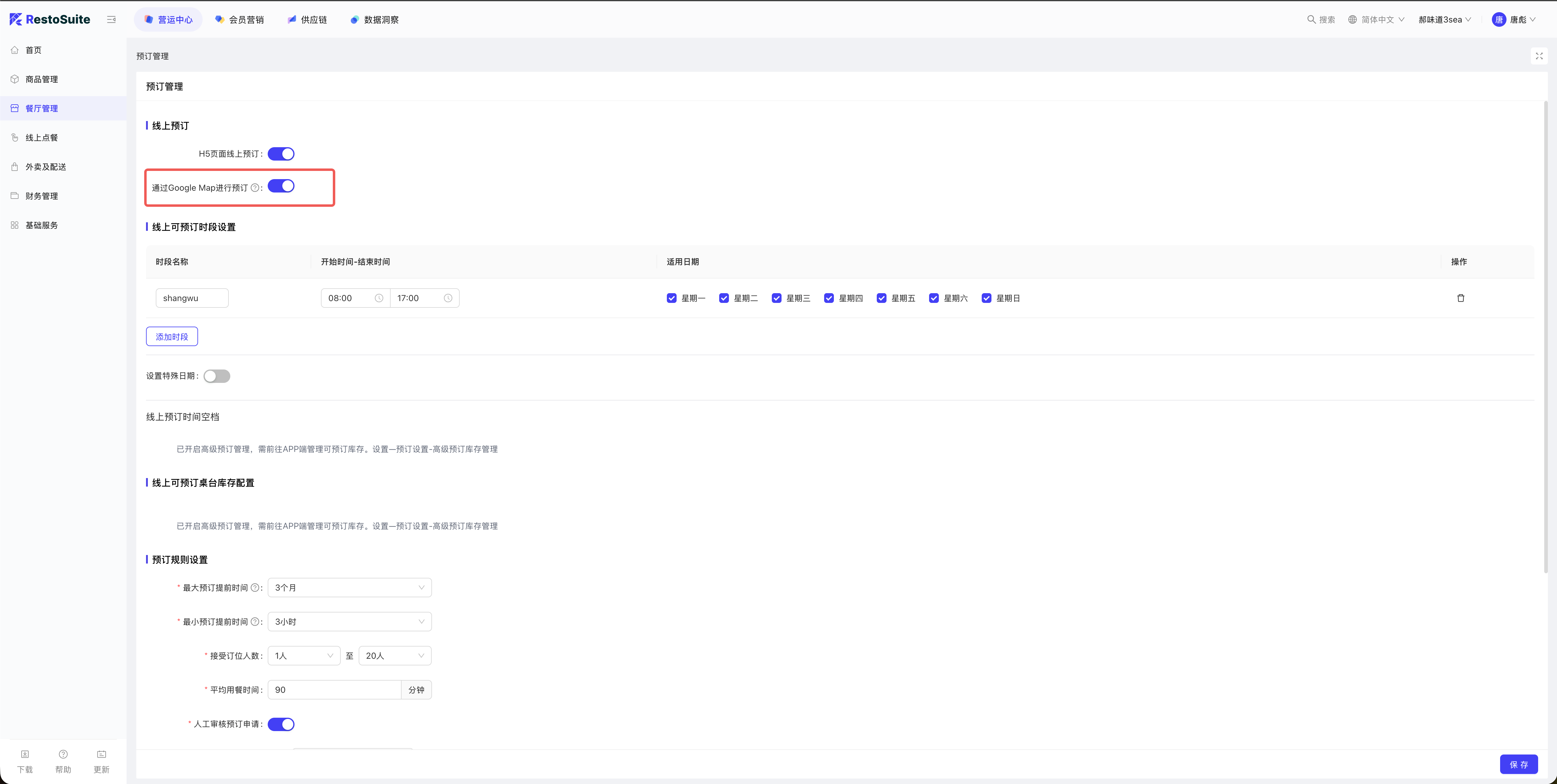 17.1 【预订管理】支持门店自行开启 Google Map 预订集成