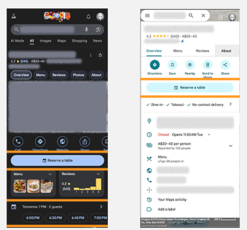 - 使用场景:门店开启预订功能且完成配置,可以打开开关,将预订信息同步到Google Map,用户可以在Google Map 中完成预订下单。