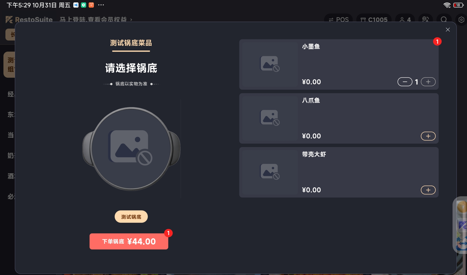 - 如果是自助餐模式时,选择档位后,也会判断选择锅底菜品;