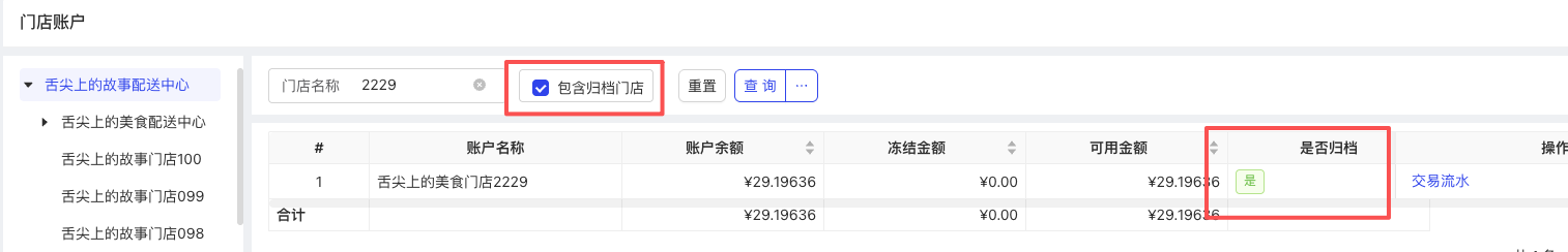 15.5 门店账户/流水表增加“包含归档门店”条件,查询结果增加“归档”列显示