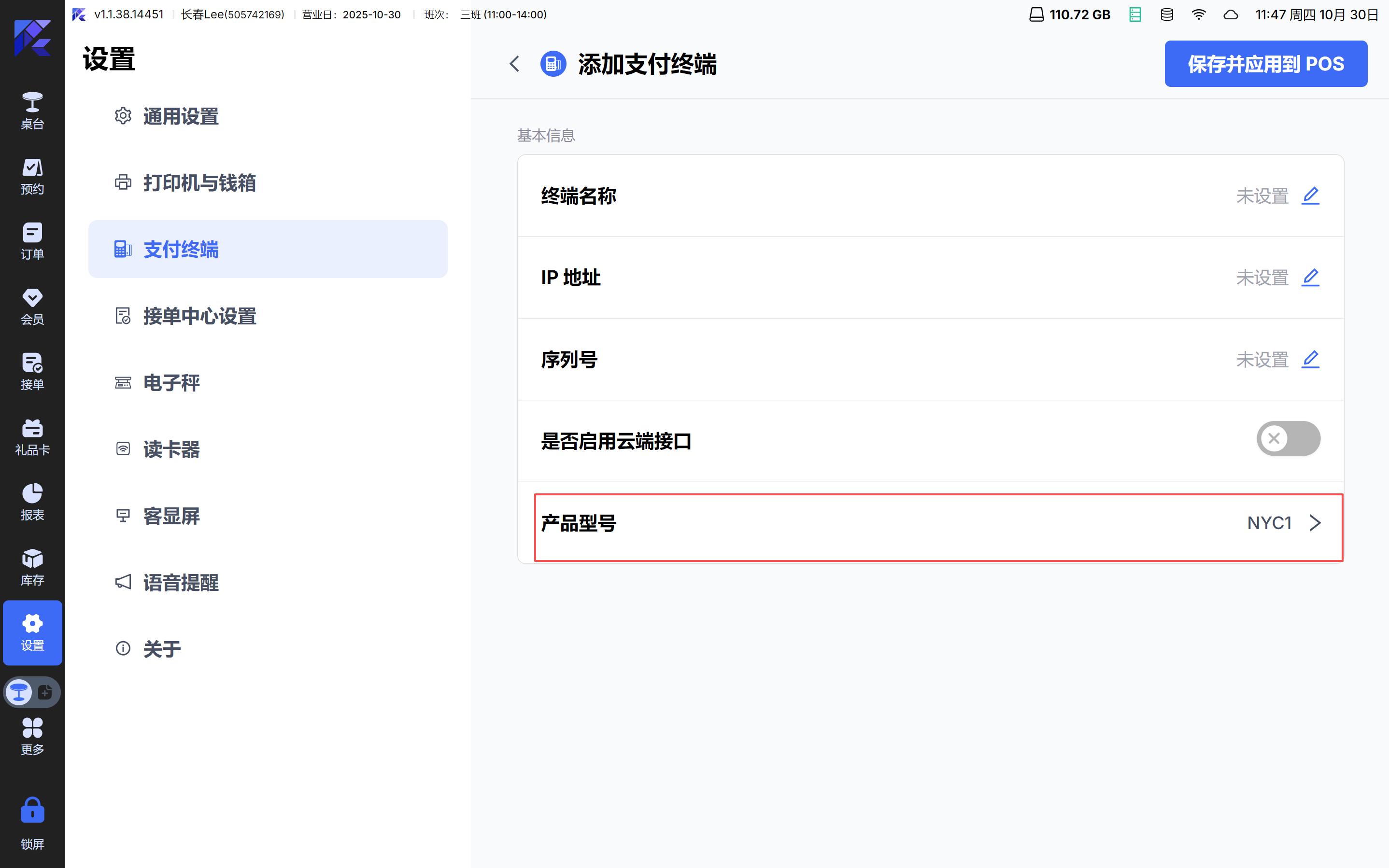 - POS 设置-支付设备-增加 adyen 的 NYC1 的设备型号;
