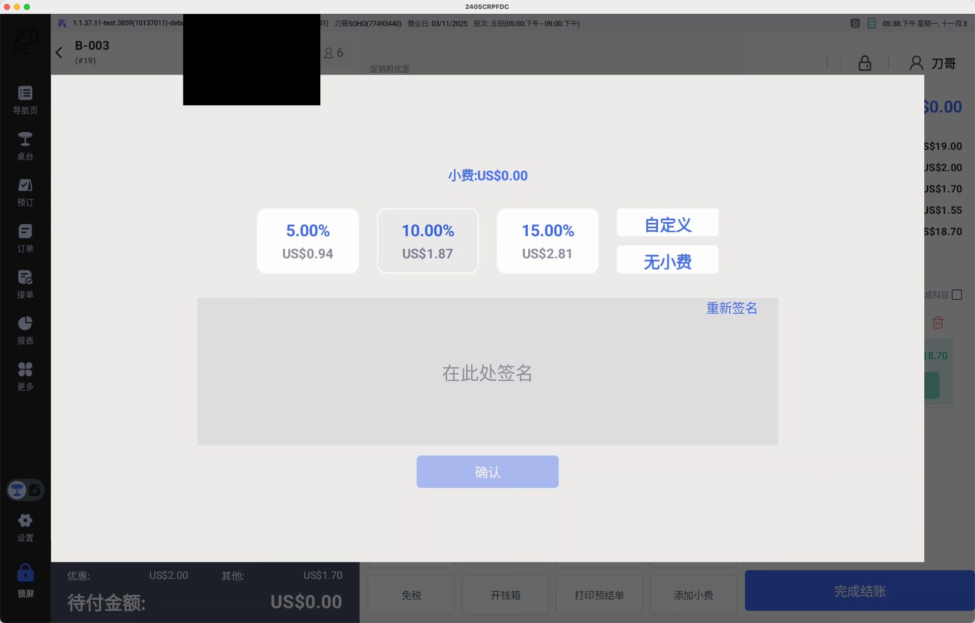 1.5 安卓 POS-支持在副屏或 pad 上选小费及签名 【1.1.37.11】