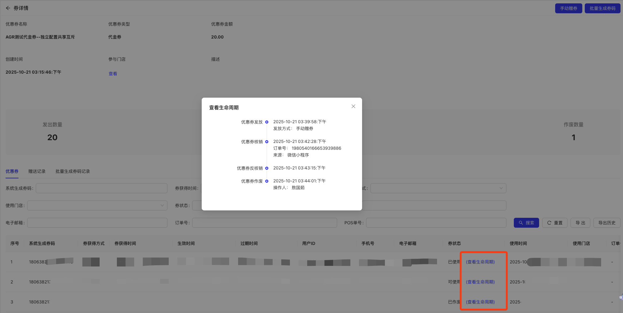 - 功能简介:支持查询指定时间范围内效期物料开封后的生命周期,包含开封数量、开封时间、未过期、已过期等不同状态下对应的操作时间、处理人信息,及时管控门店的效期物料使用情况
