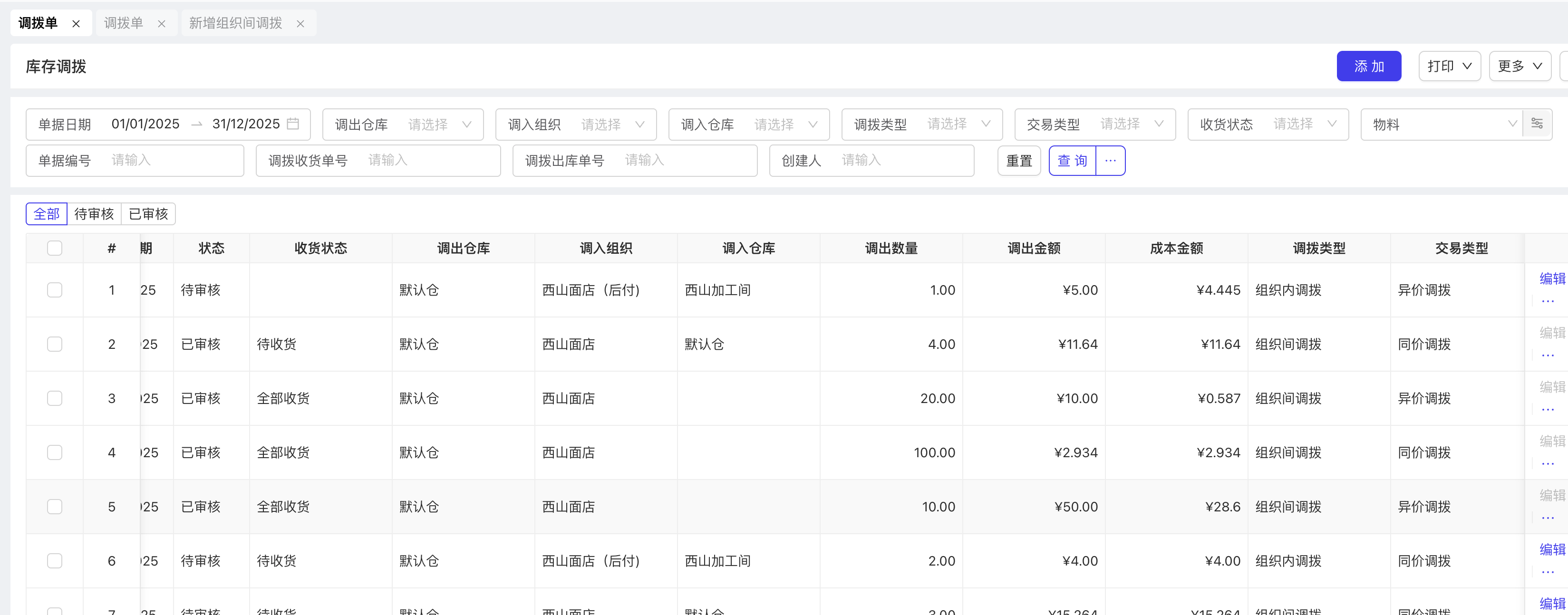 - 配送中心之间的调拨,会检查物料清单是在调入仓库是否已下发,如果未下发会提示出来,门店调拨仅检查调入组织是否下发,与仓库无关
