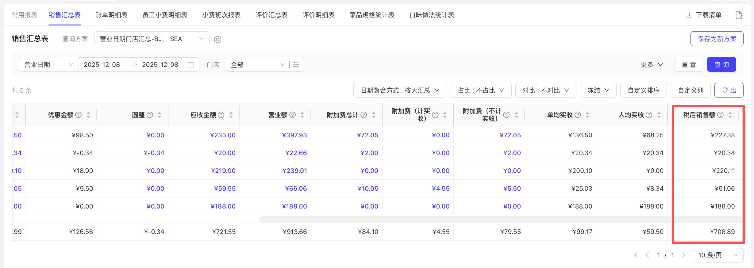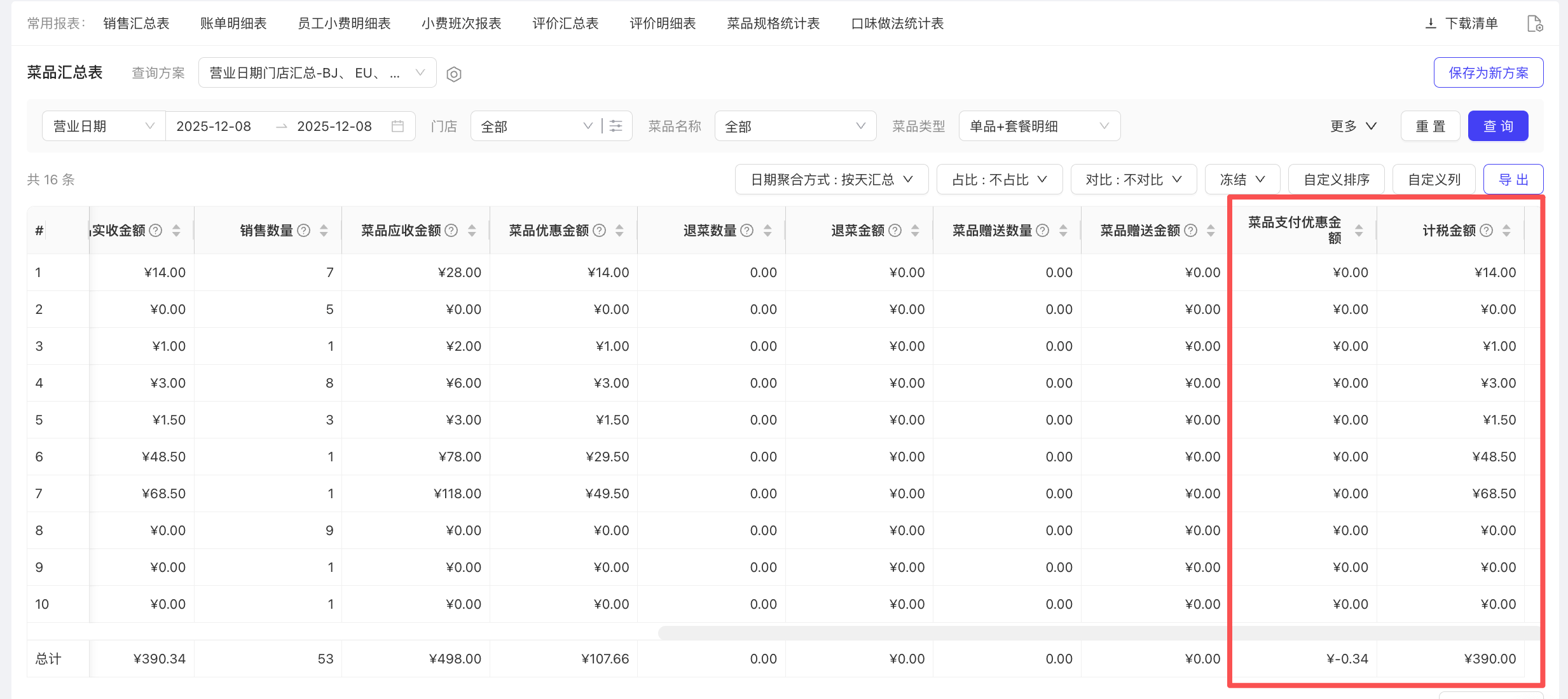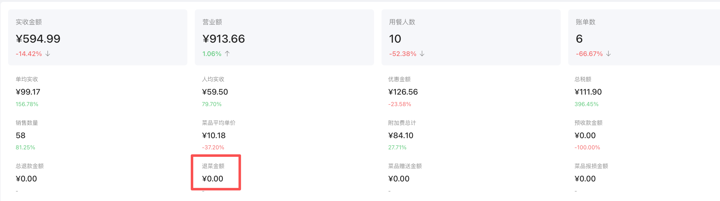 - 使用场景:统计退菜金额