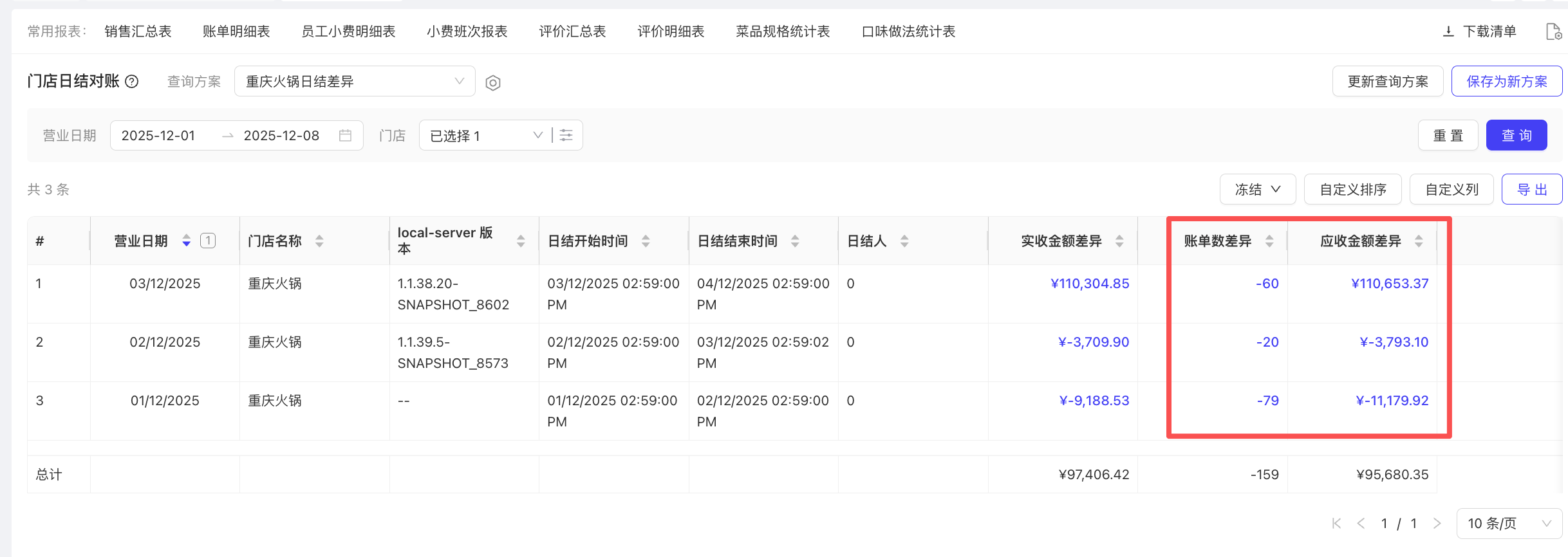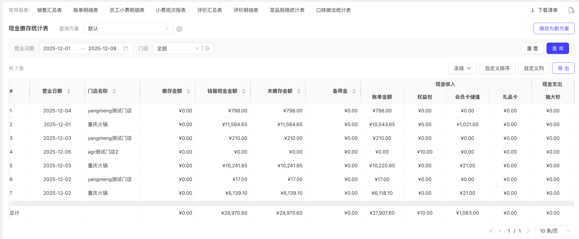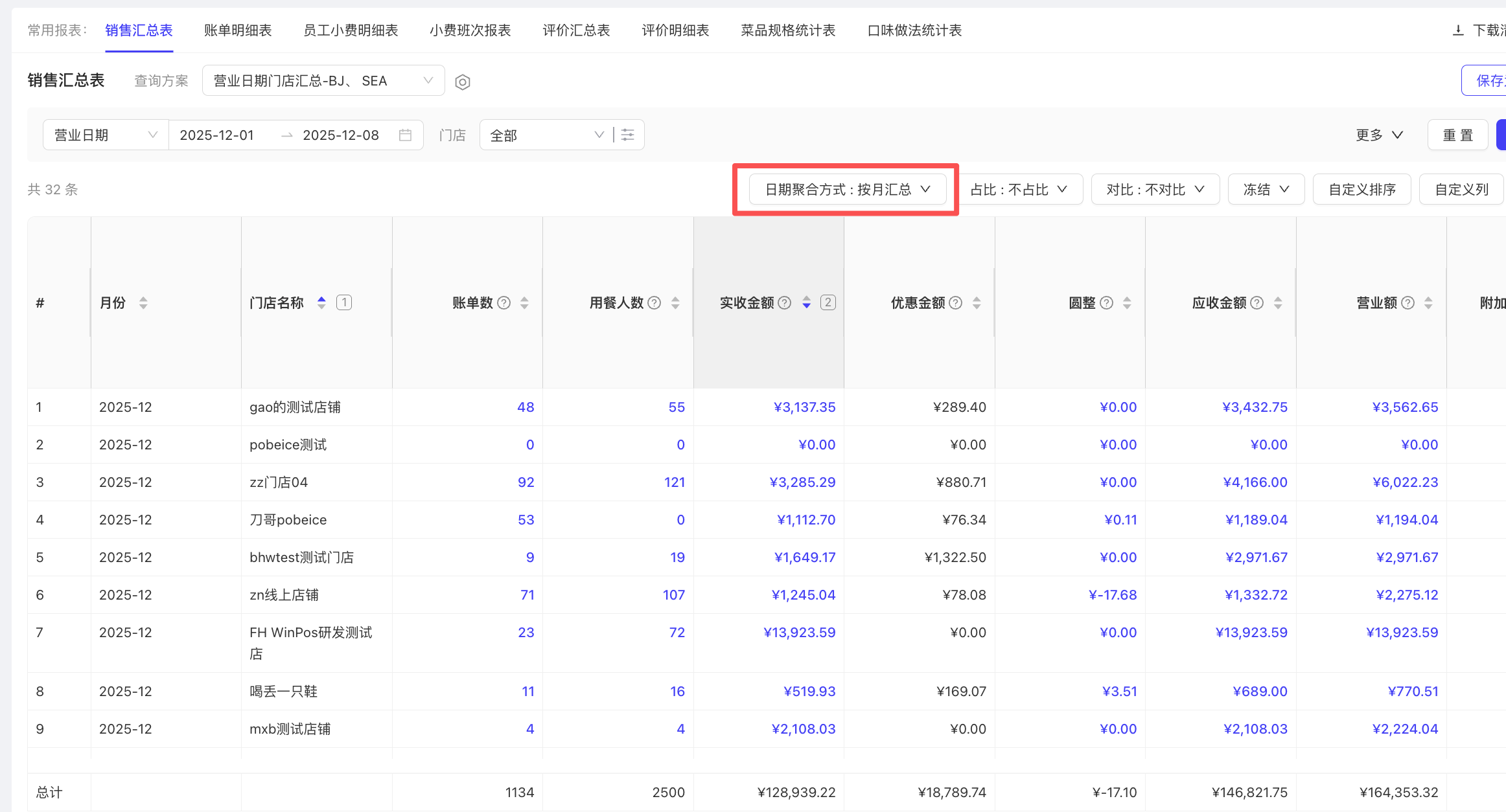 - 使用场景:统计退菜金额