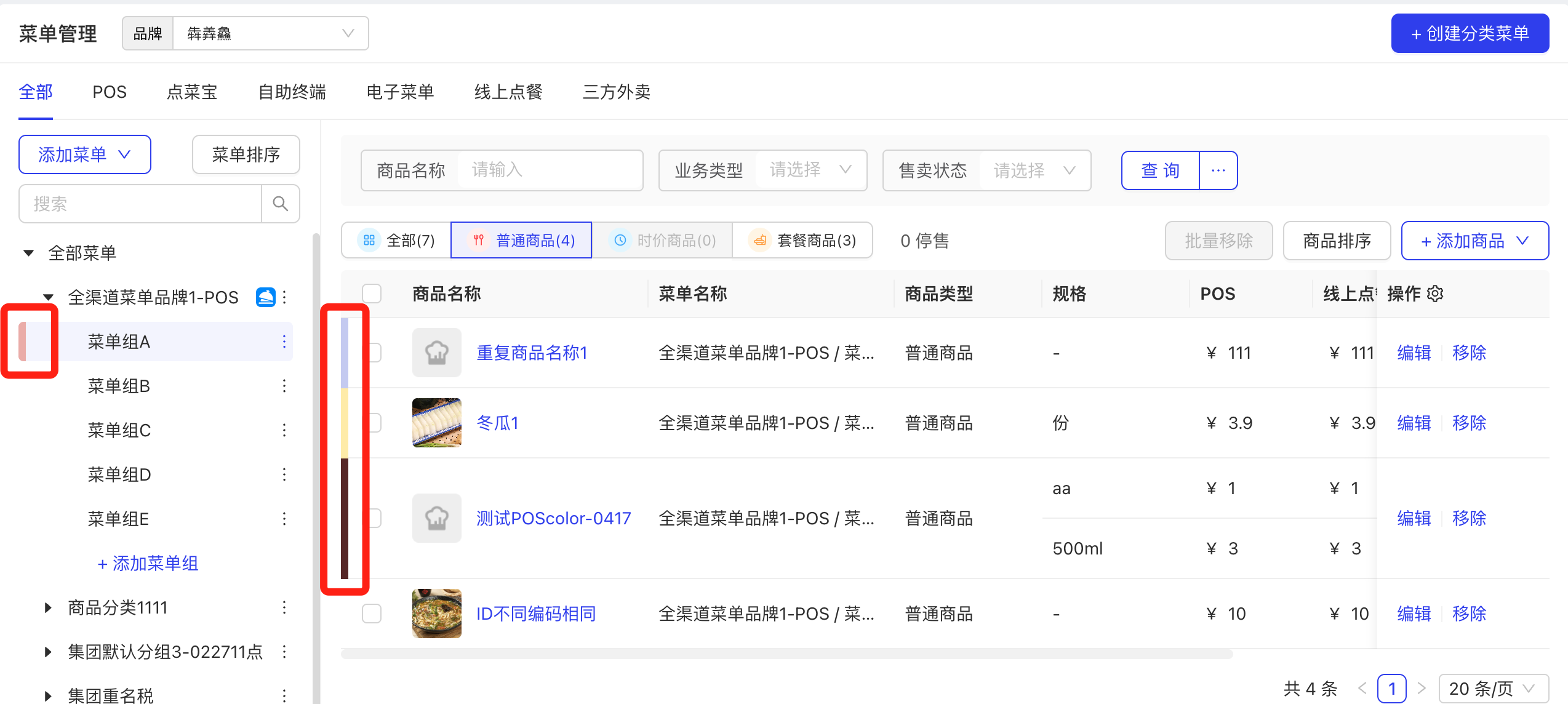 同菜单不同菜单组