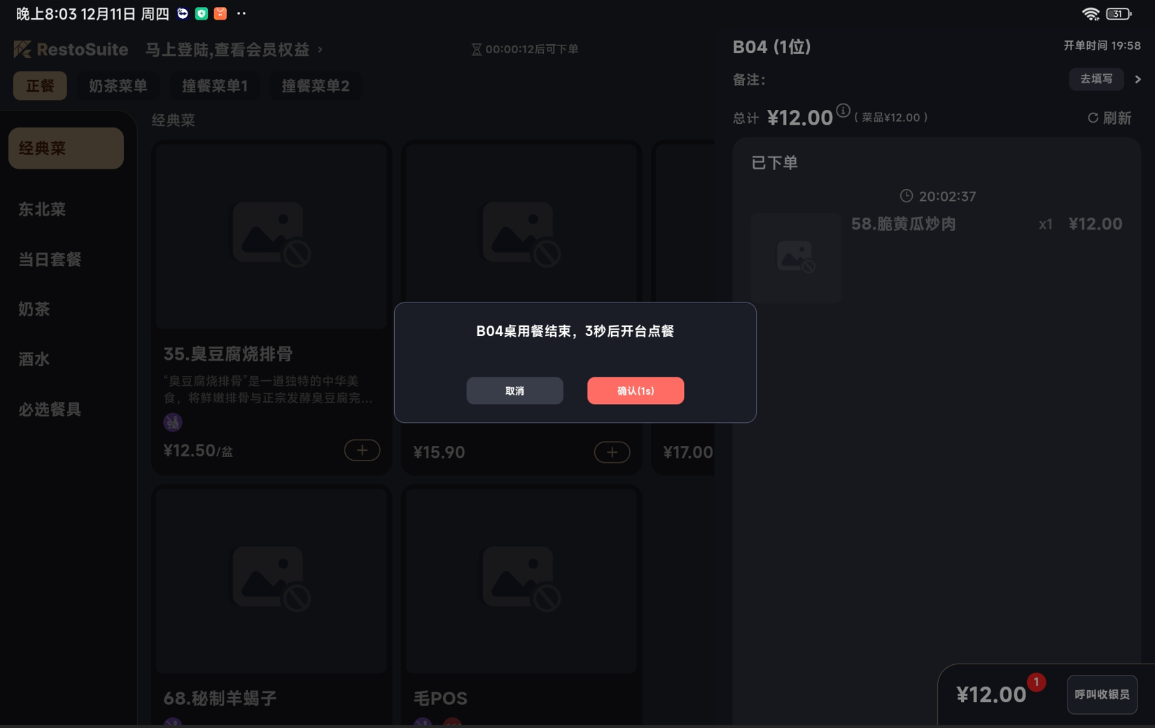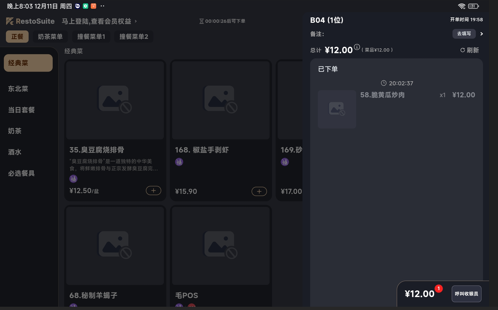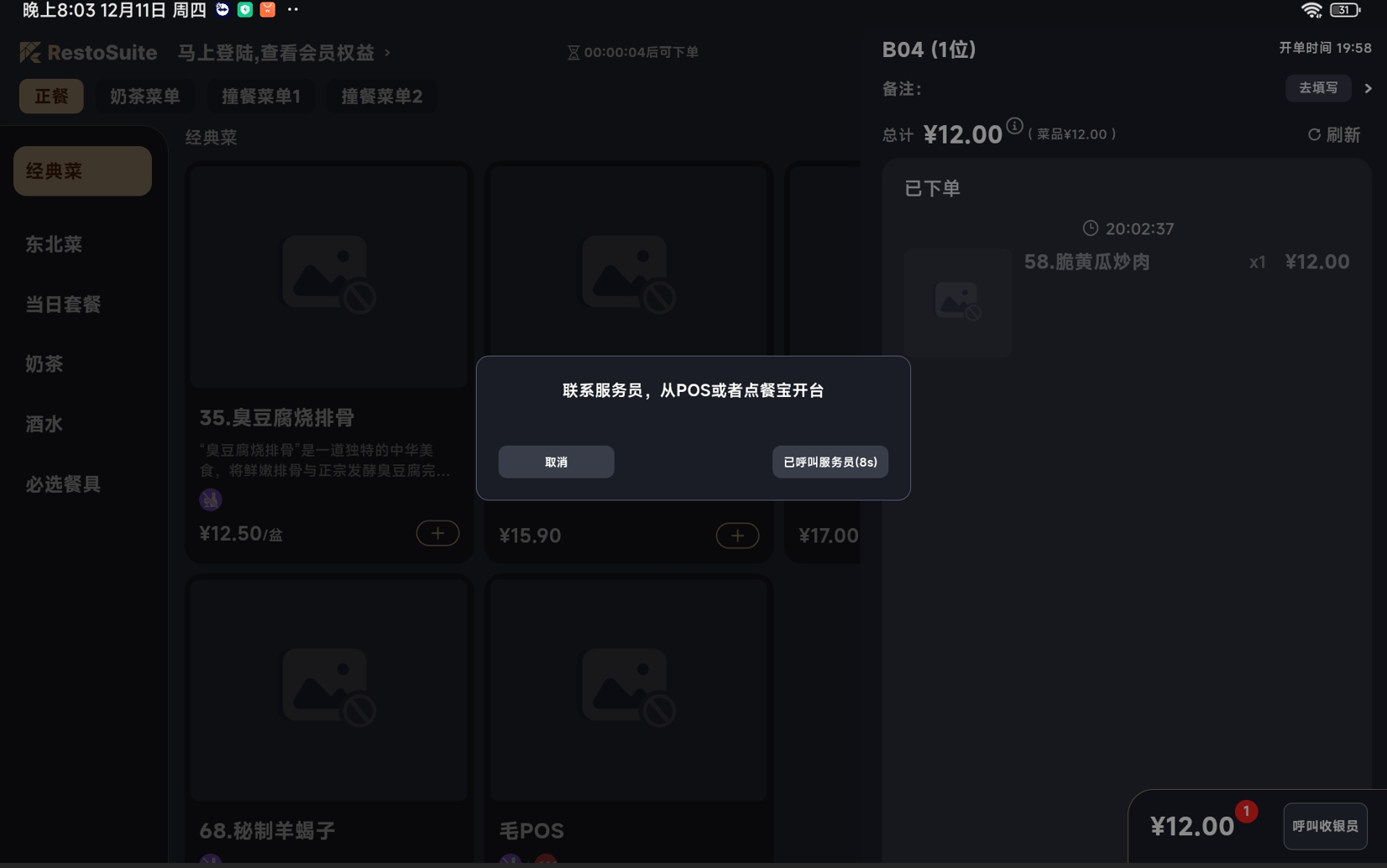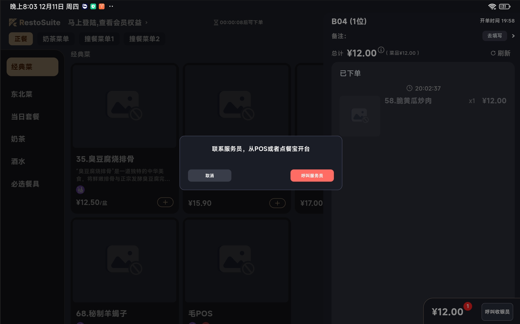 - 功能路径:点菜宝-点菜页面
